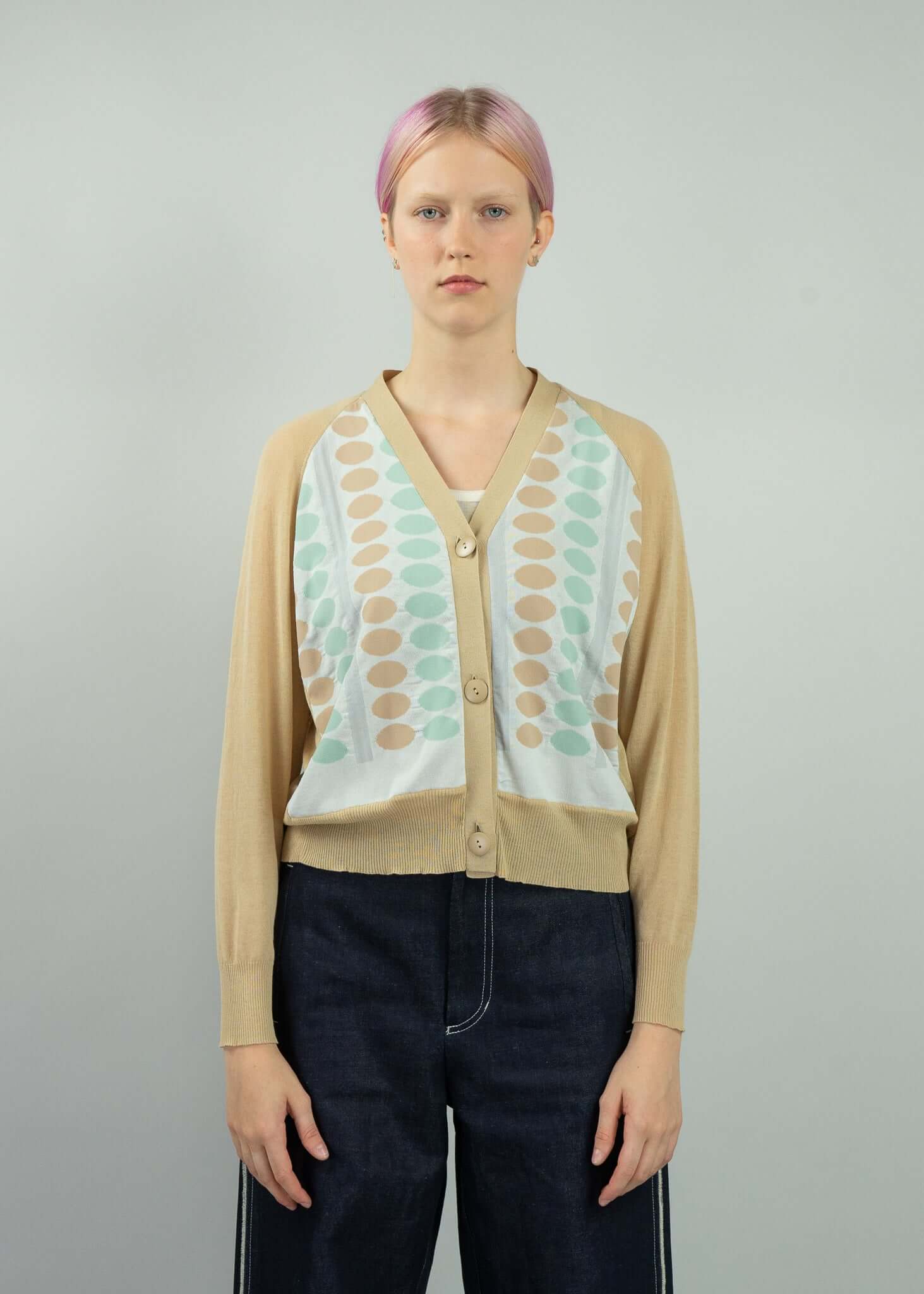 Weste zum Knöpfen und abstraktem Muster vorne, Ärmel und Rücken uni.