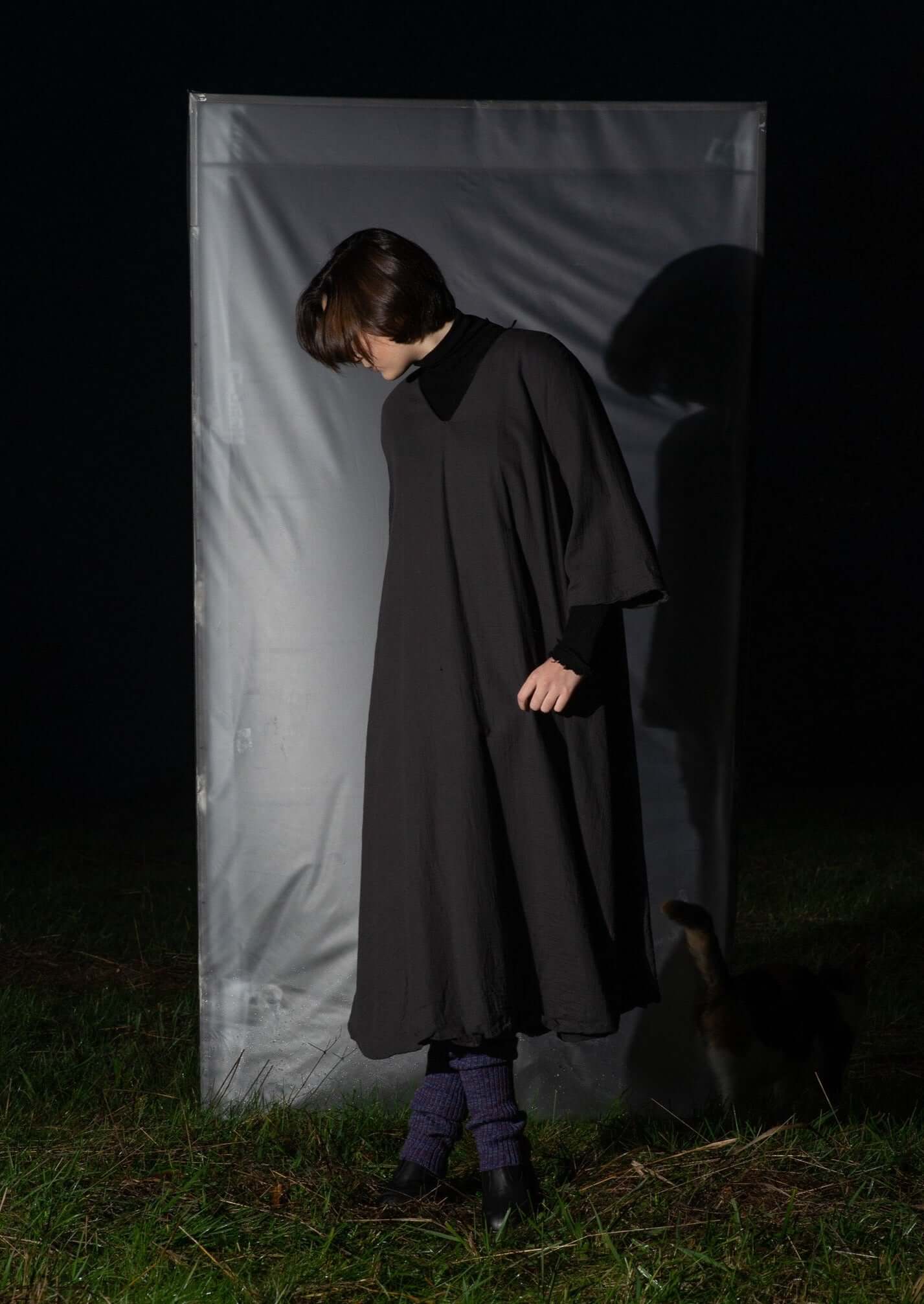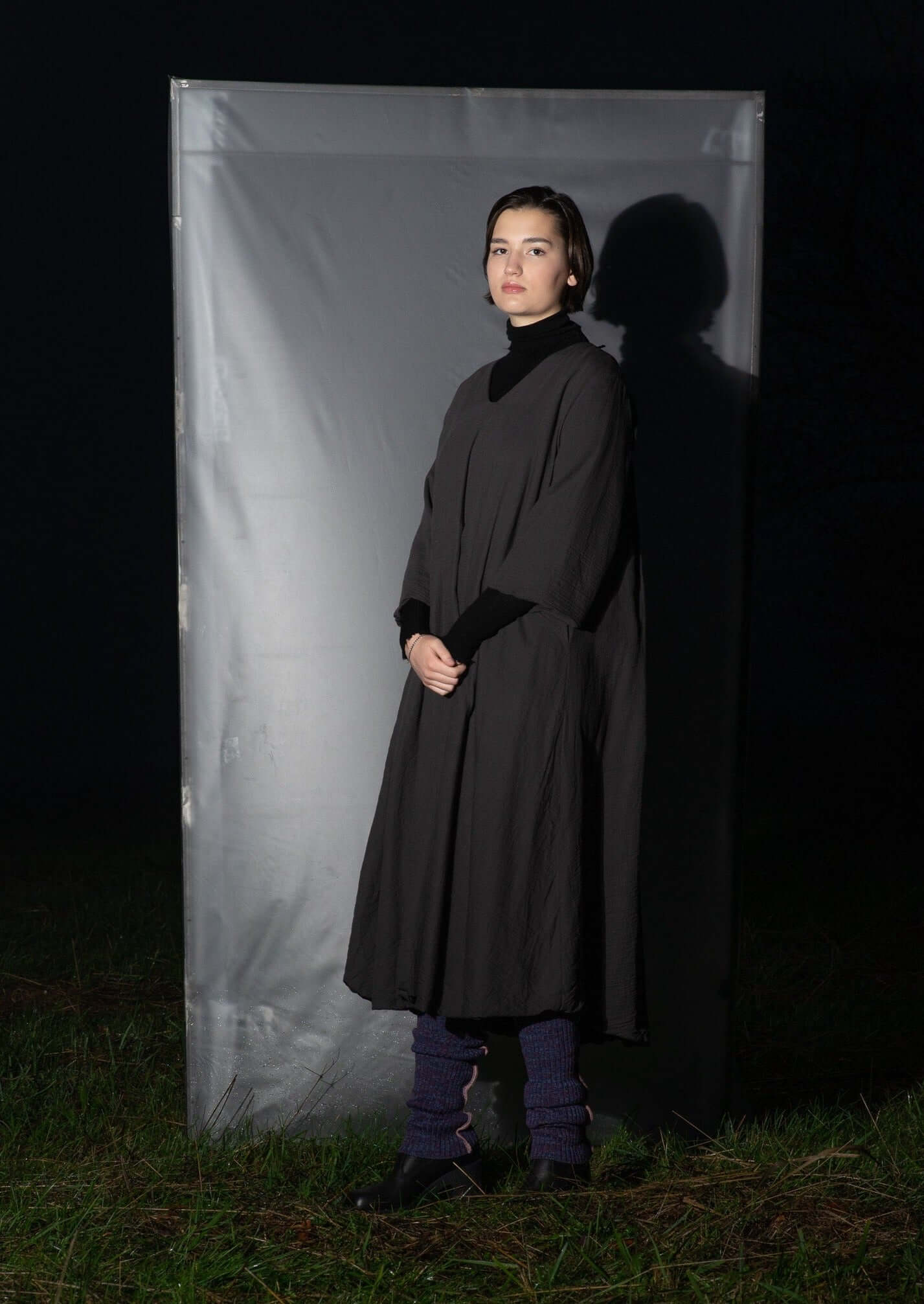 Weites Kleid in A-Linie aus doppeltem Stoff.