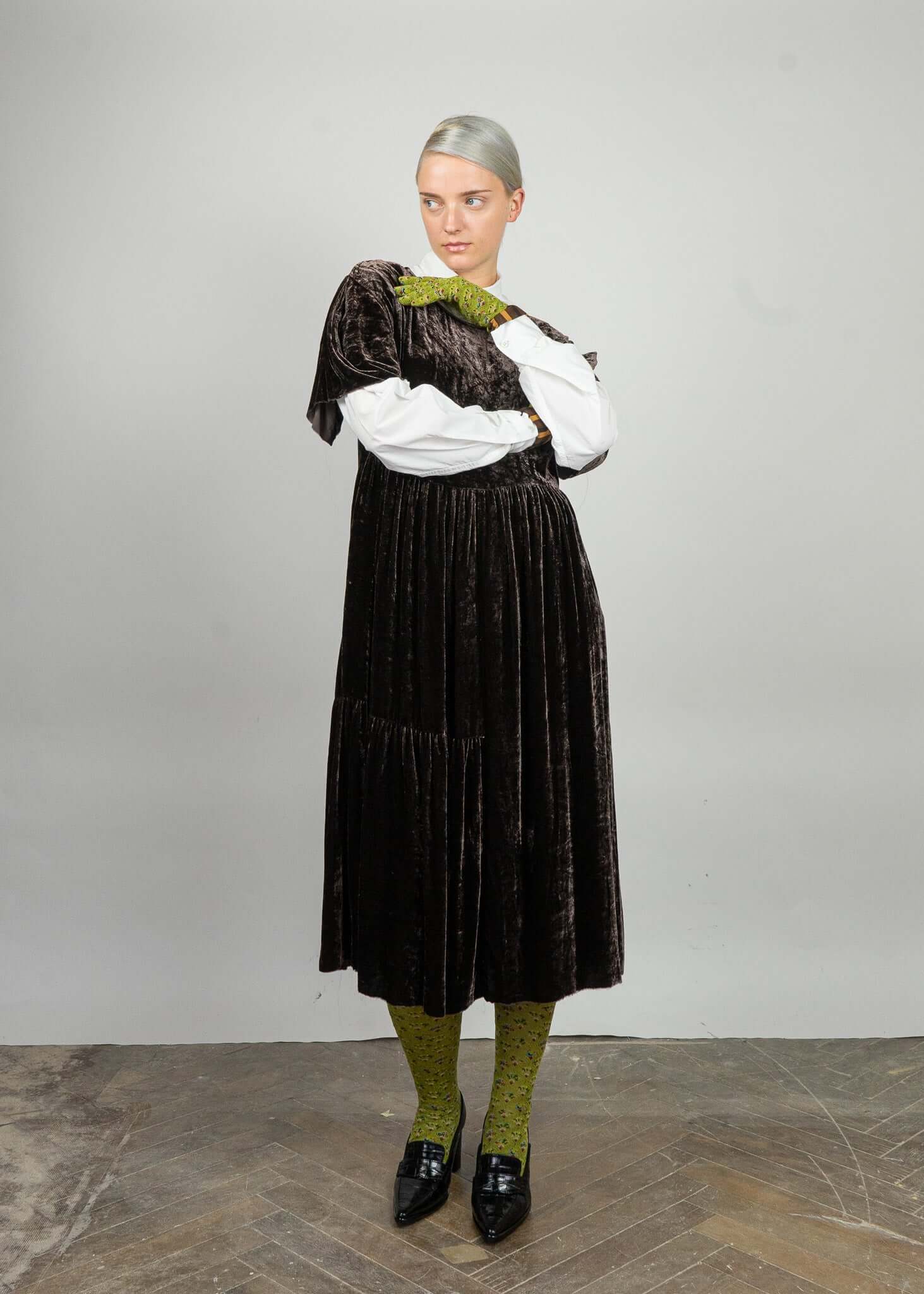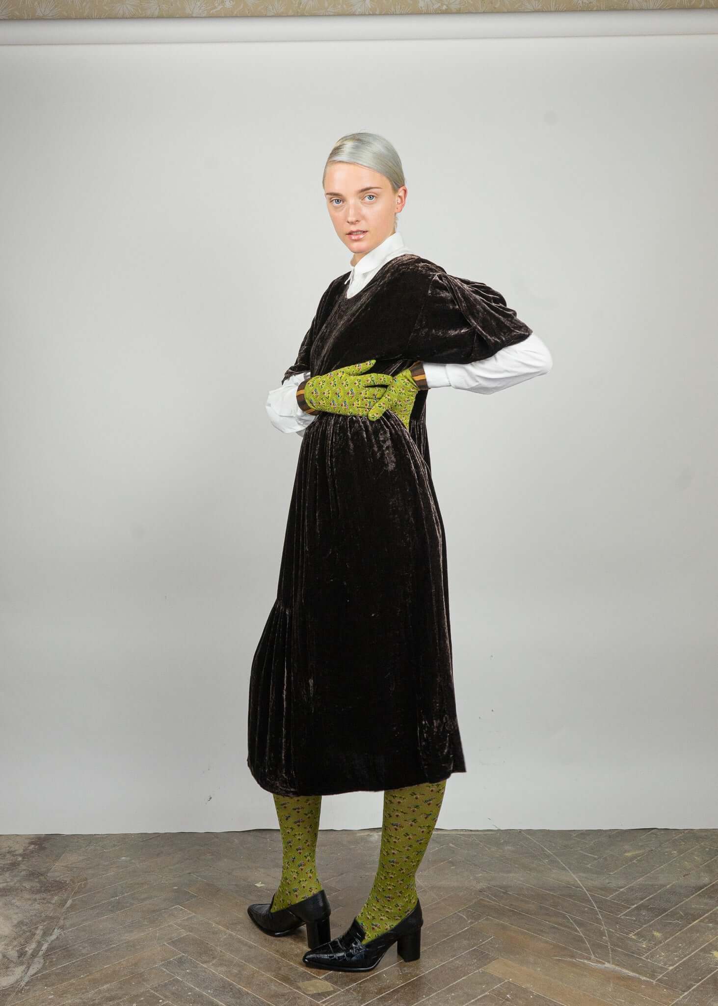 Kleid mit Raffungen und kurzen locker fallenden Ärmeln aus Samt