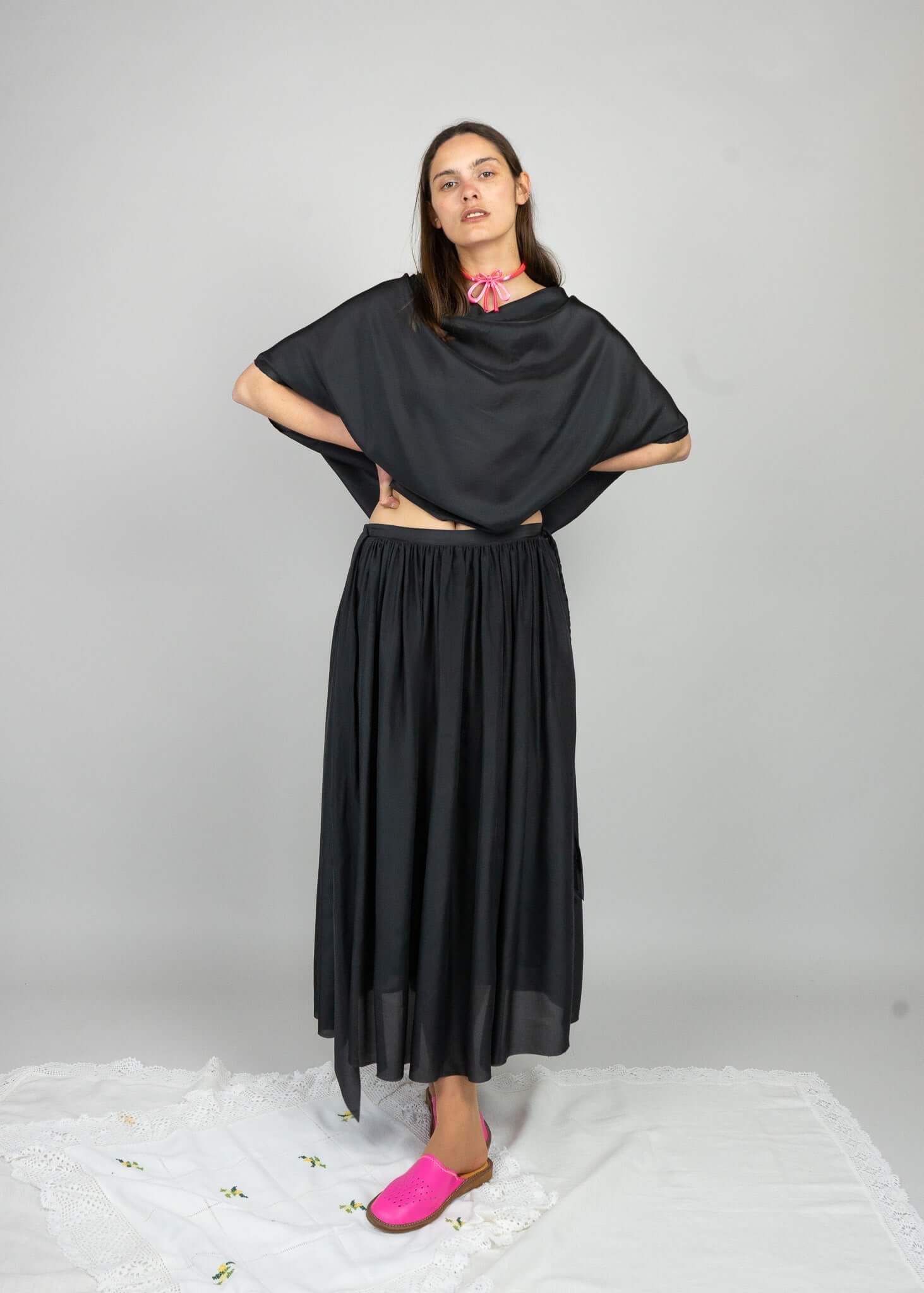 Rock aus gewaschner Seide, gefüttert mit weicher Bauwolle, Taschen in der Seite und elastischem Bund