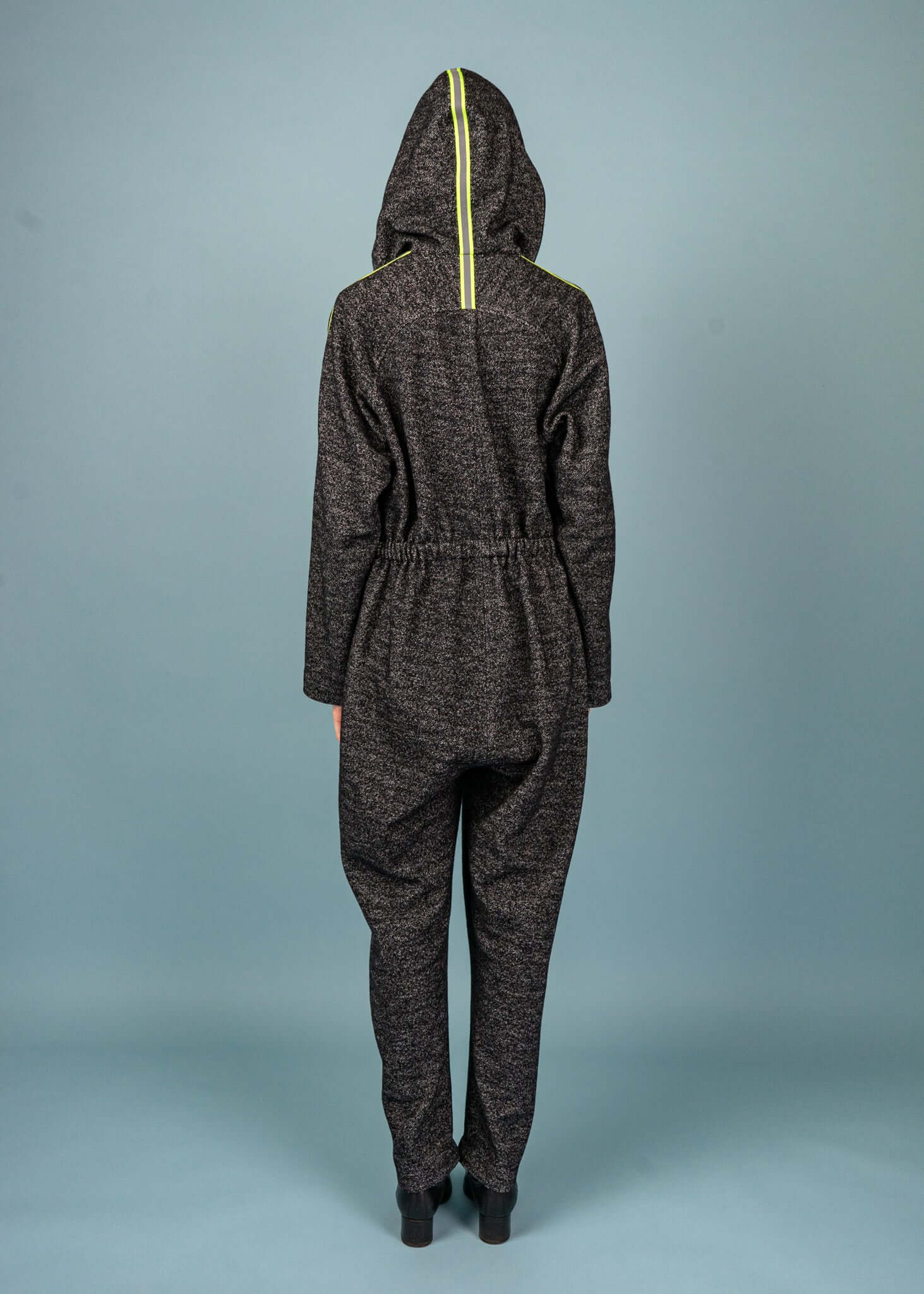 Jumpsuit aus weichem Wolljersey, Reißverschluss vorne, Taschen, Reflektorsreifen an den Ärmeln und Kapuze