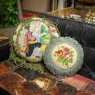 Jedes Kissen ist ein Unikat: Handgestickte Gobelinbilder treffen auf ausgewählte Vintage-Möbelstoffe und seltene Dead-Stock-Materialien.