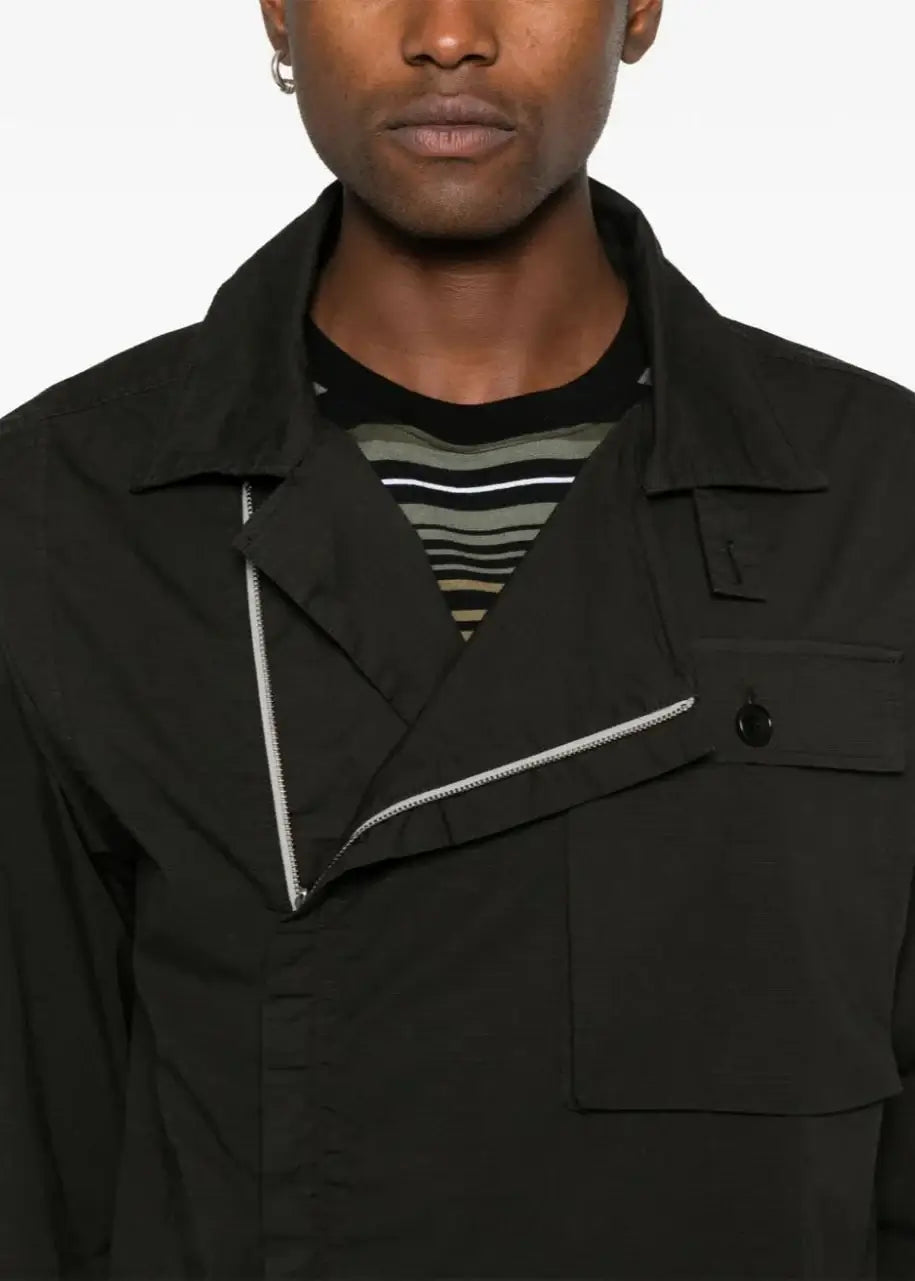 Jumpsuit mit klassischem Kragen und asymmetrischem Reißverschluss sowie einer aufgesetzten Fronttasche und langen Ärmeln.