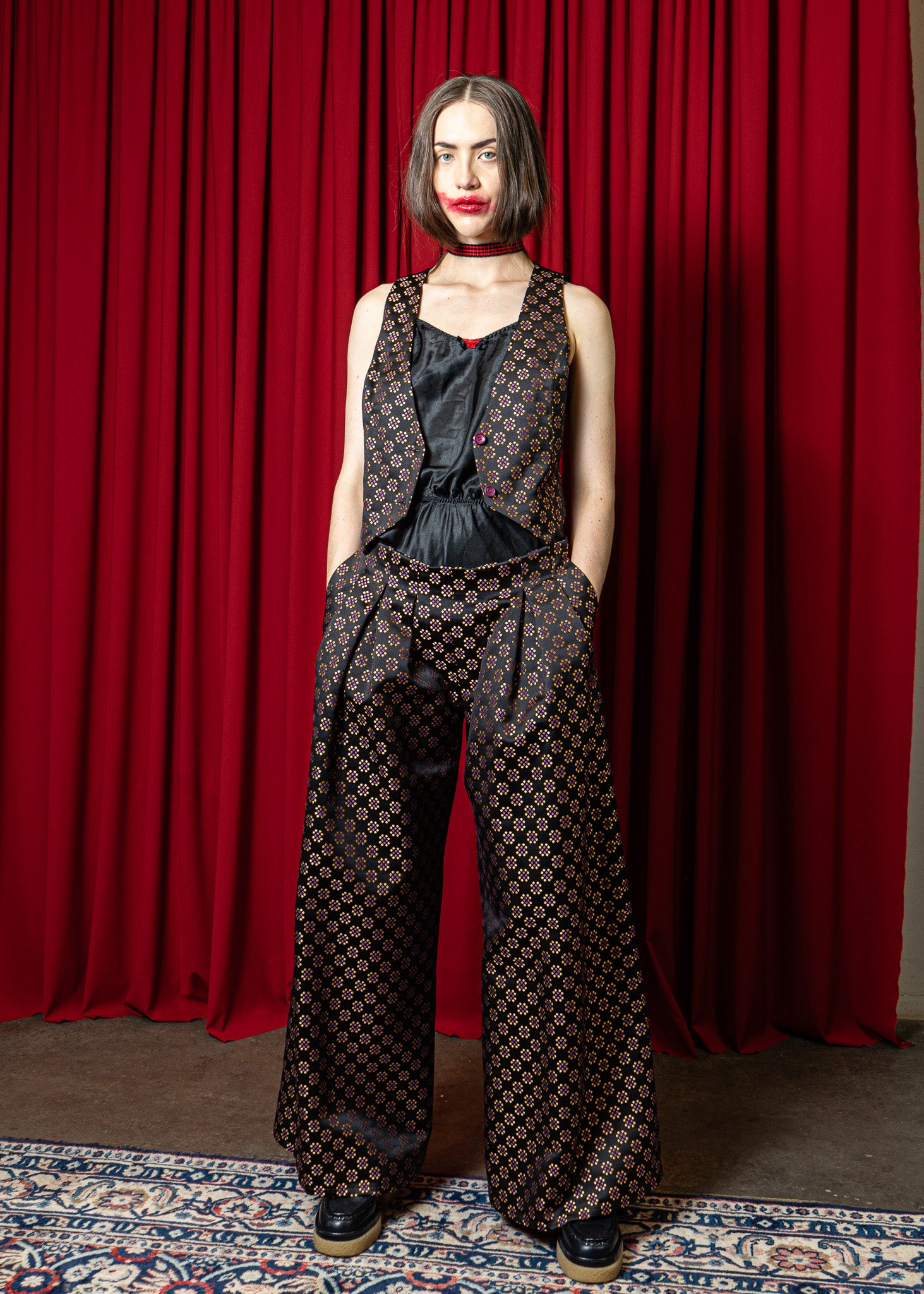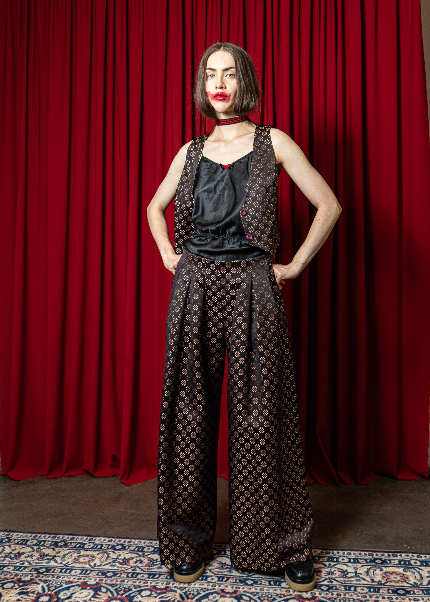 Bundfaltenhose mit Falten am Vorderteil und seitlichen Taschen.