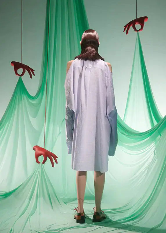 Mittellanges Shirtkleid mit einer oversized-Passform und langen Ärmeln, sowie einer offenen Schulterpartie.