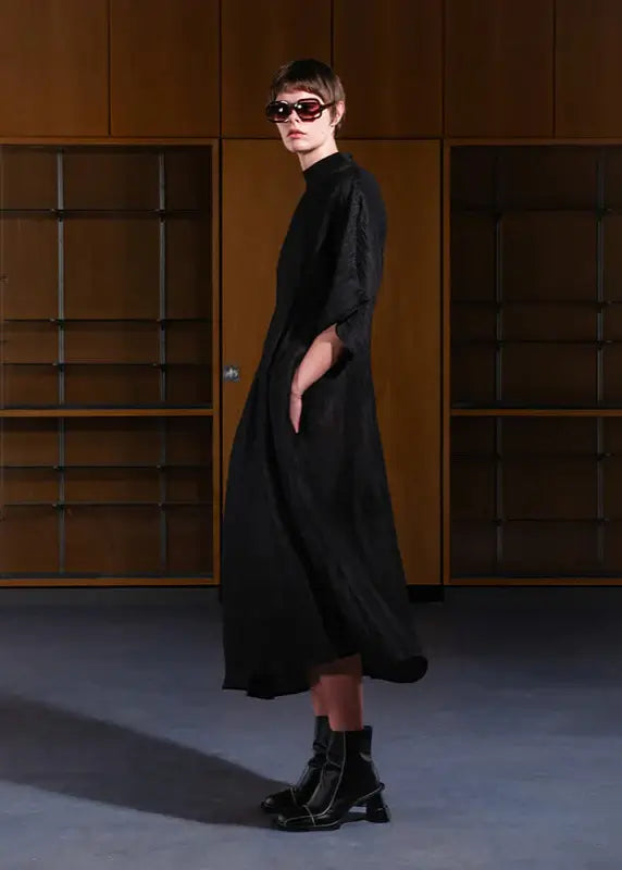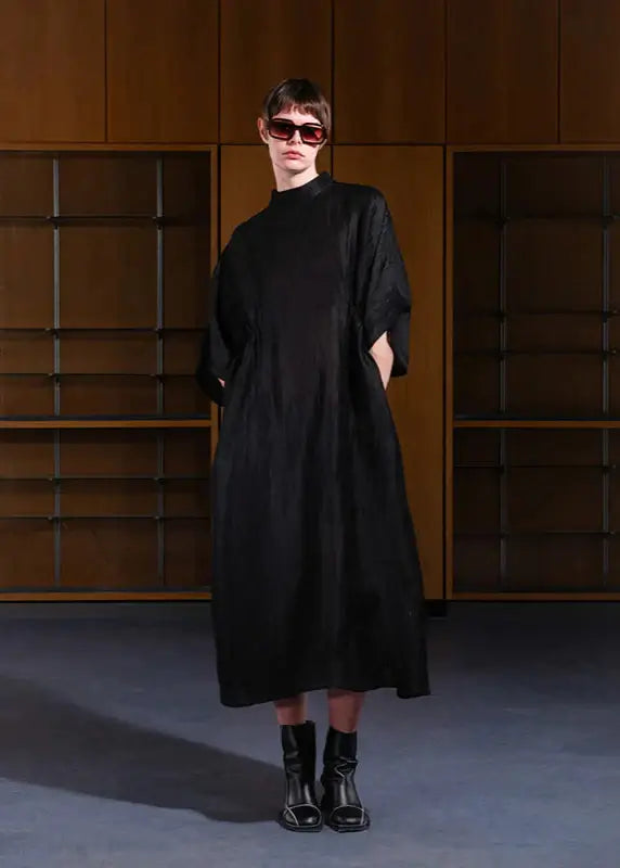 Leicht transparentes Kleid mit Rollkragen und kurzen übergroßen Ärmeln.