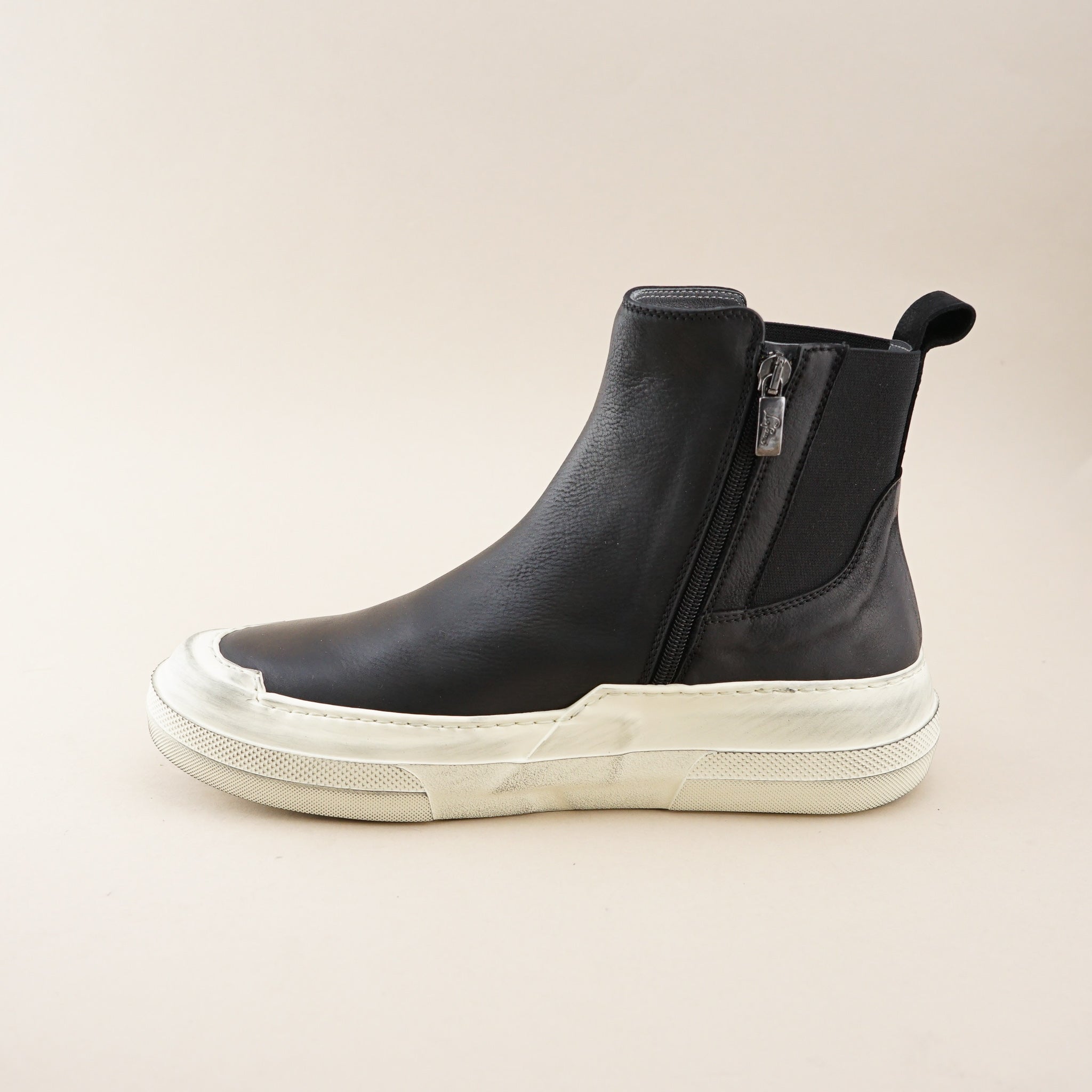Herrenstiefel aus Leder mit Reißverschluss auf der Seite und mit einem Gummieinsatz.