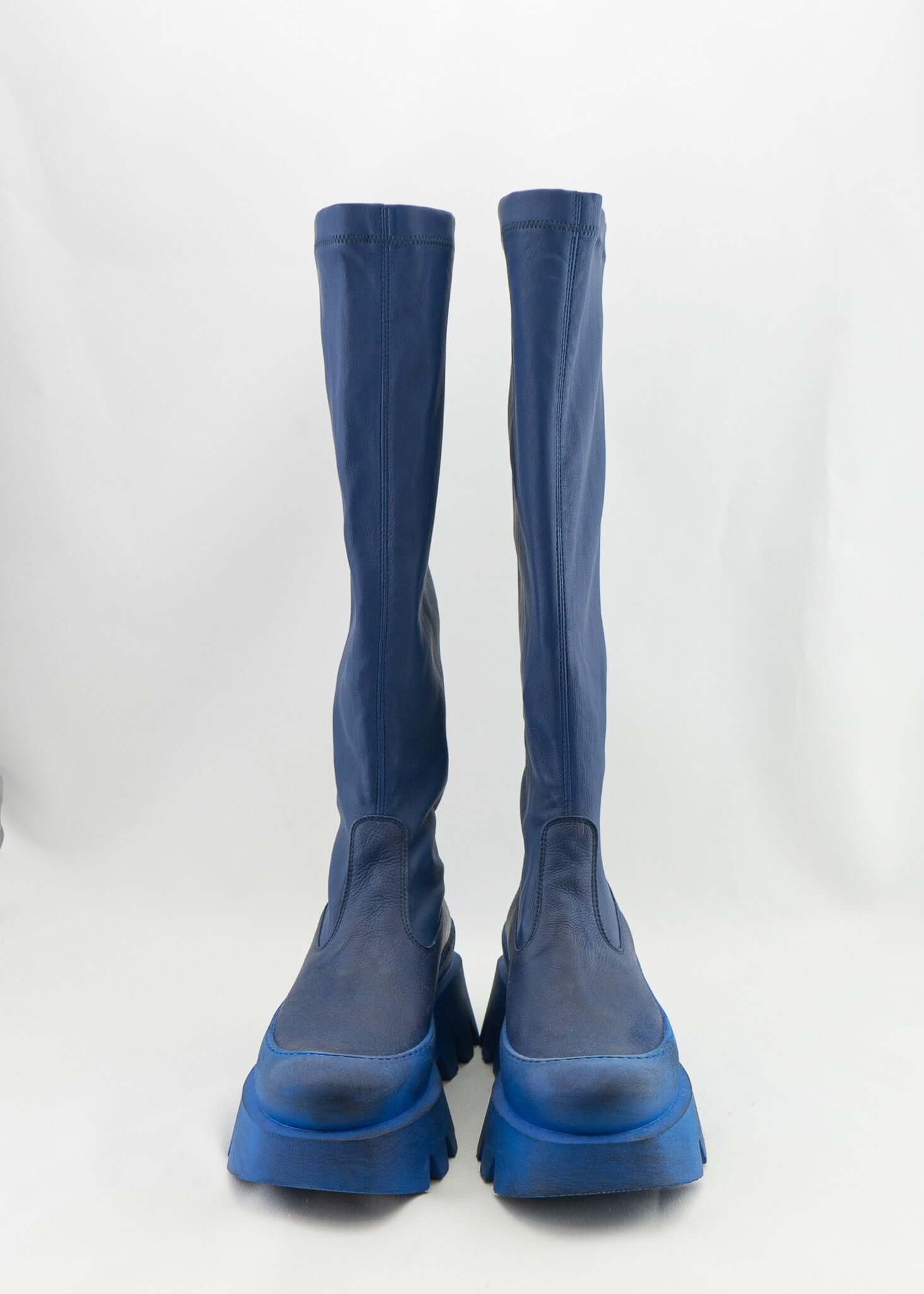 Kniehohe Stiefel aus Leder, sind durch ihr stretchiges Material leicht zum Anziehen