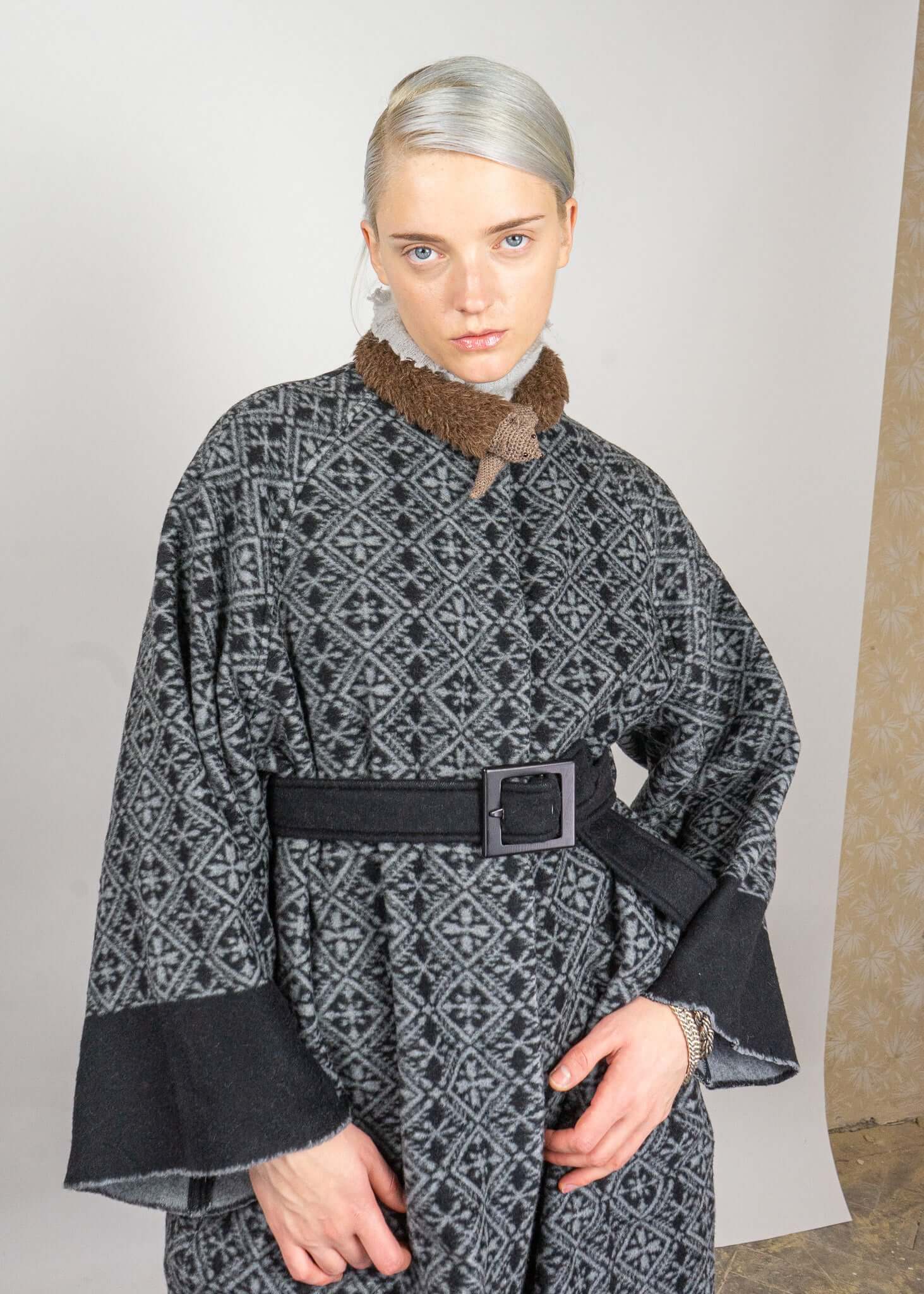Mantel aus weicher Wolle, ungefüttert, mit Druckknopfverschluss und Gürtel