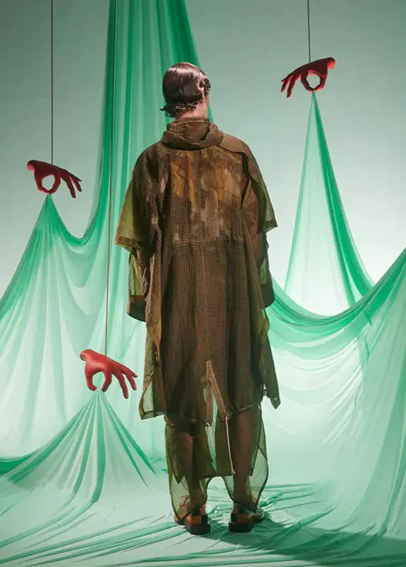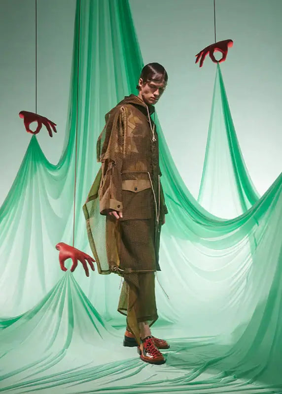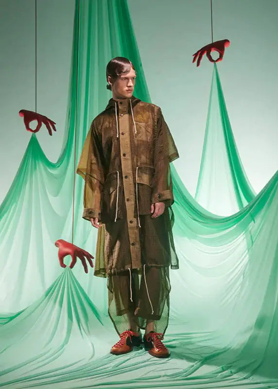 Durchsichtiger Parka mit Kapuze und verstellbarem Kordelzug auf der Taille sowie einem geraden Saum.