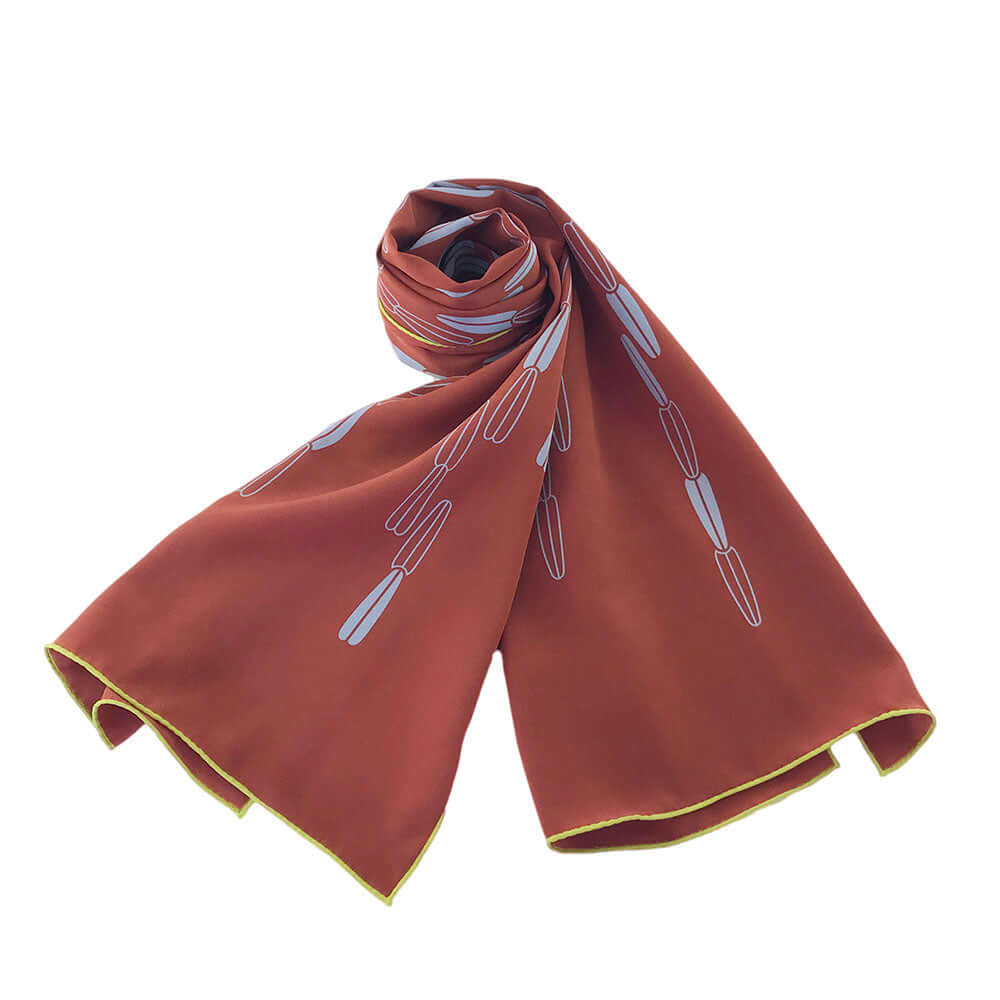 Dieses Foulard hat die Textildesignerin Liliane Vogt für Matrix entworfen. Das Design ist inspiriert von der Salicornia, auch Meeresspargel genannt. Sie ist eine der wenigen Pflanzen, die auf salzhaltigem Grund leben kann.