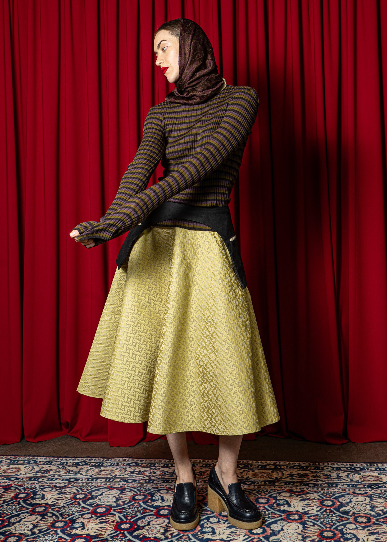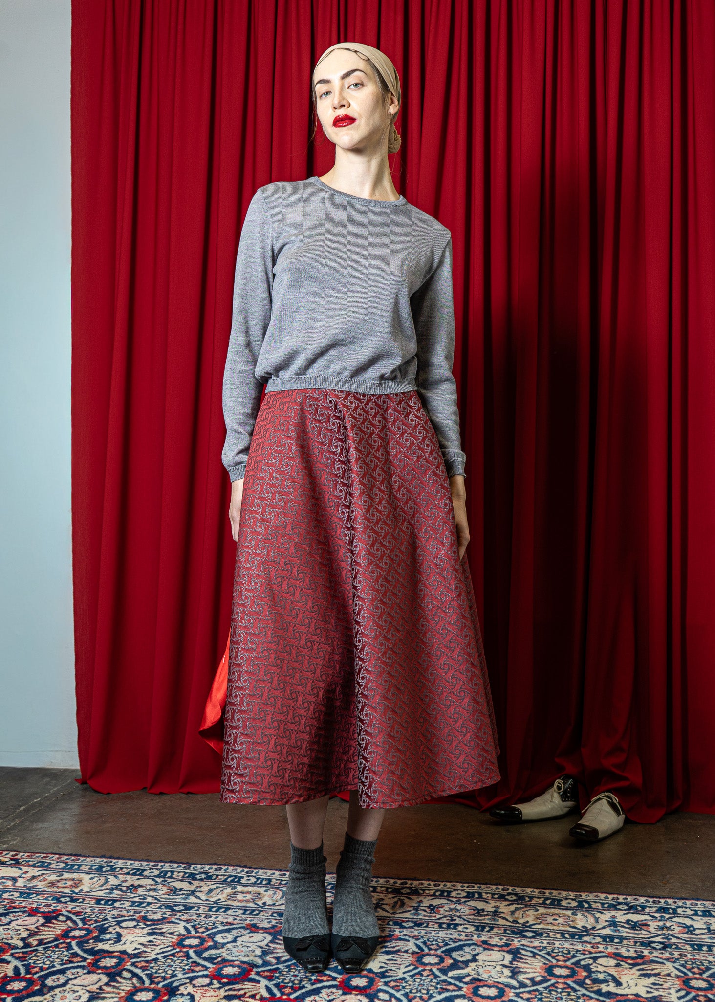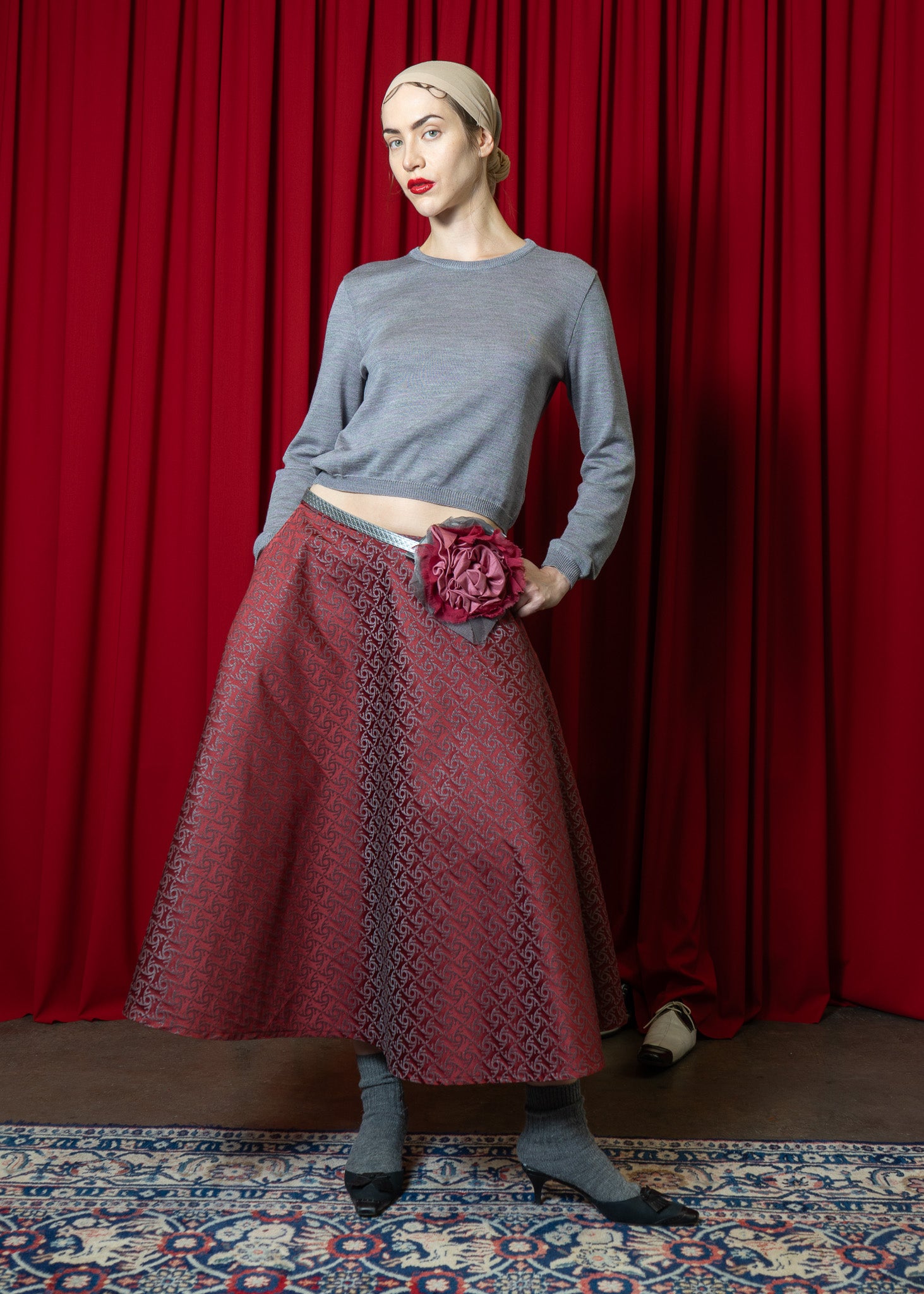 Kreisrock aus elegantem Brokat Stoff, mit Taschen in der Seite