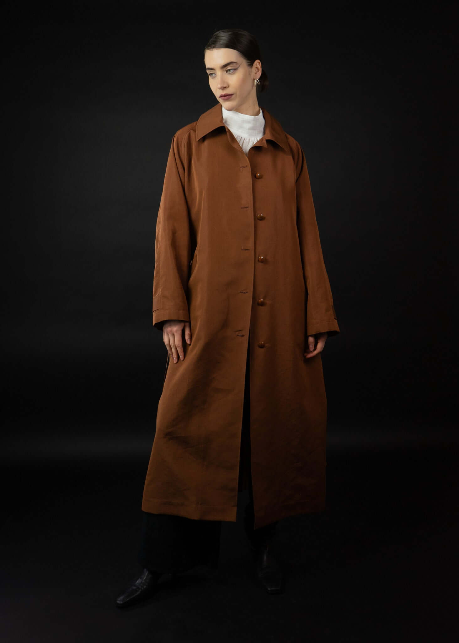 Ungefütterter Trenchcoat mit Bindegürtel.