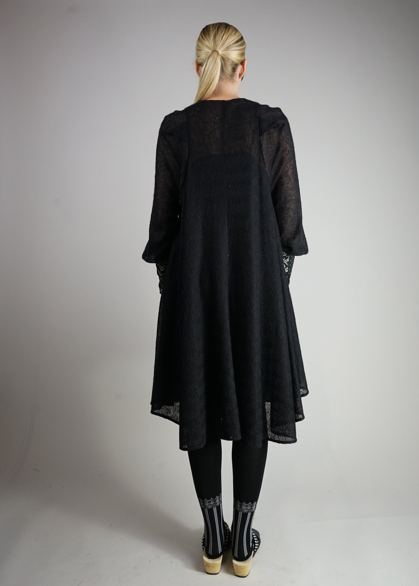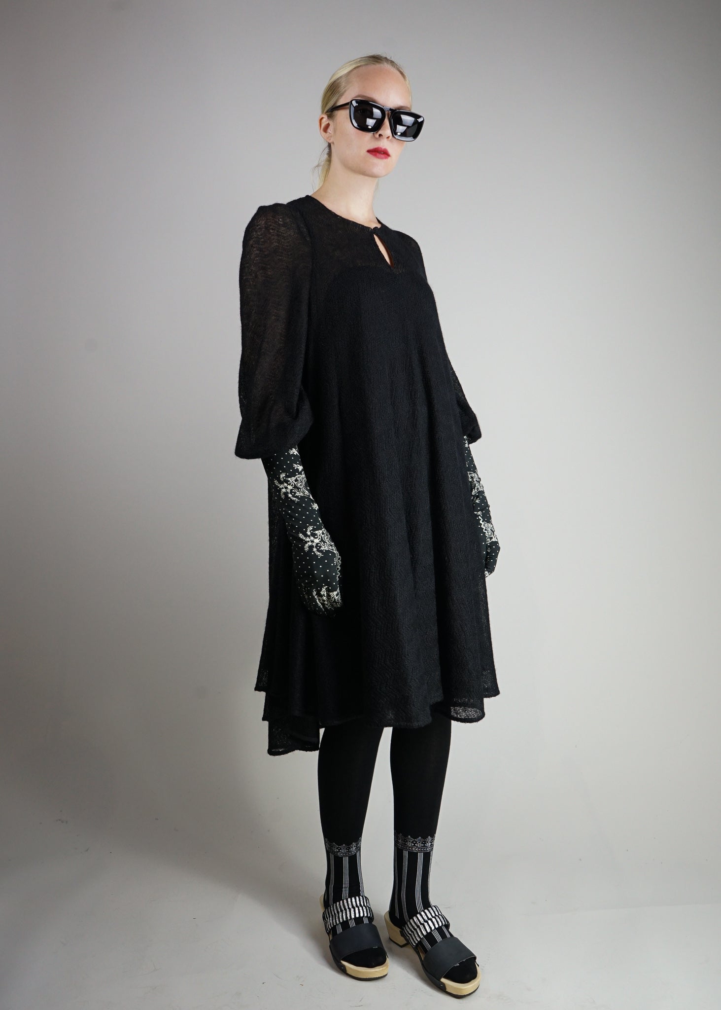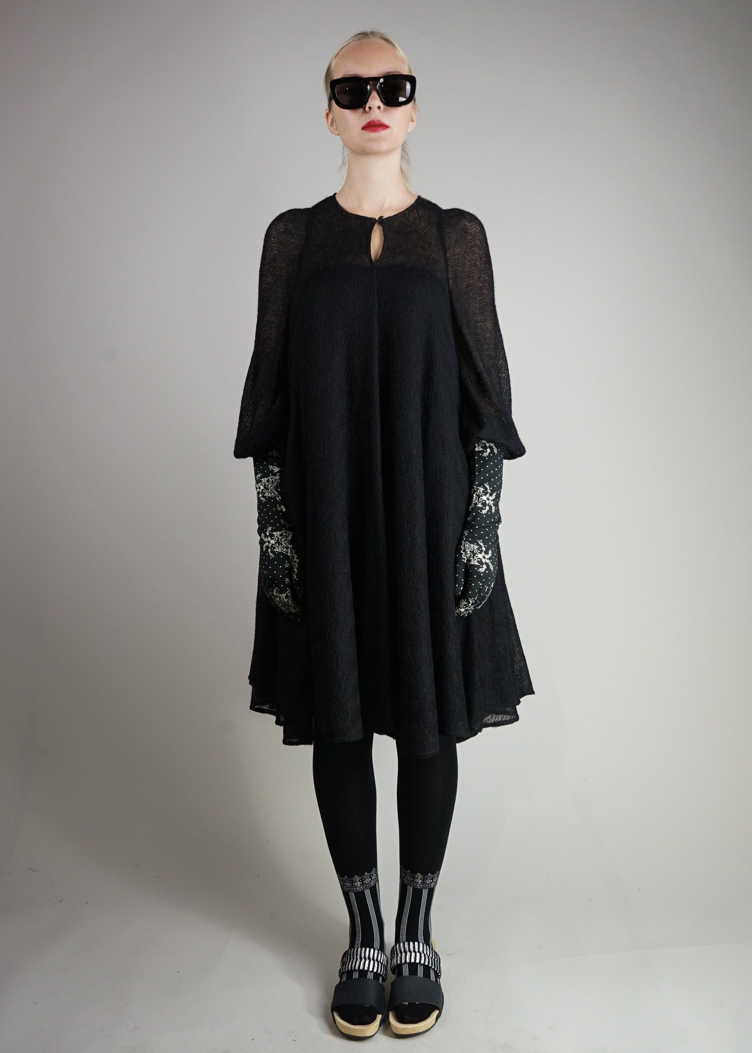 Kleid mit weiten Engelsärmeln, Schlitz vorne und leicht gefilztem Maschinentrick.