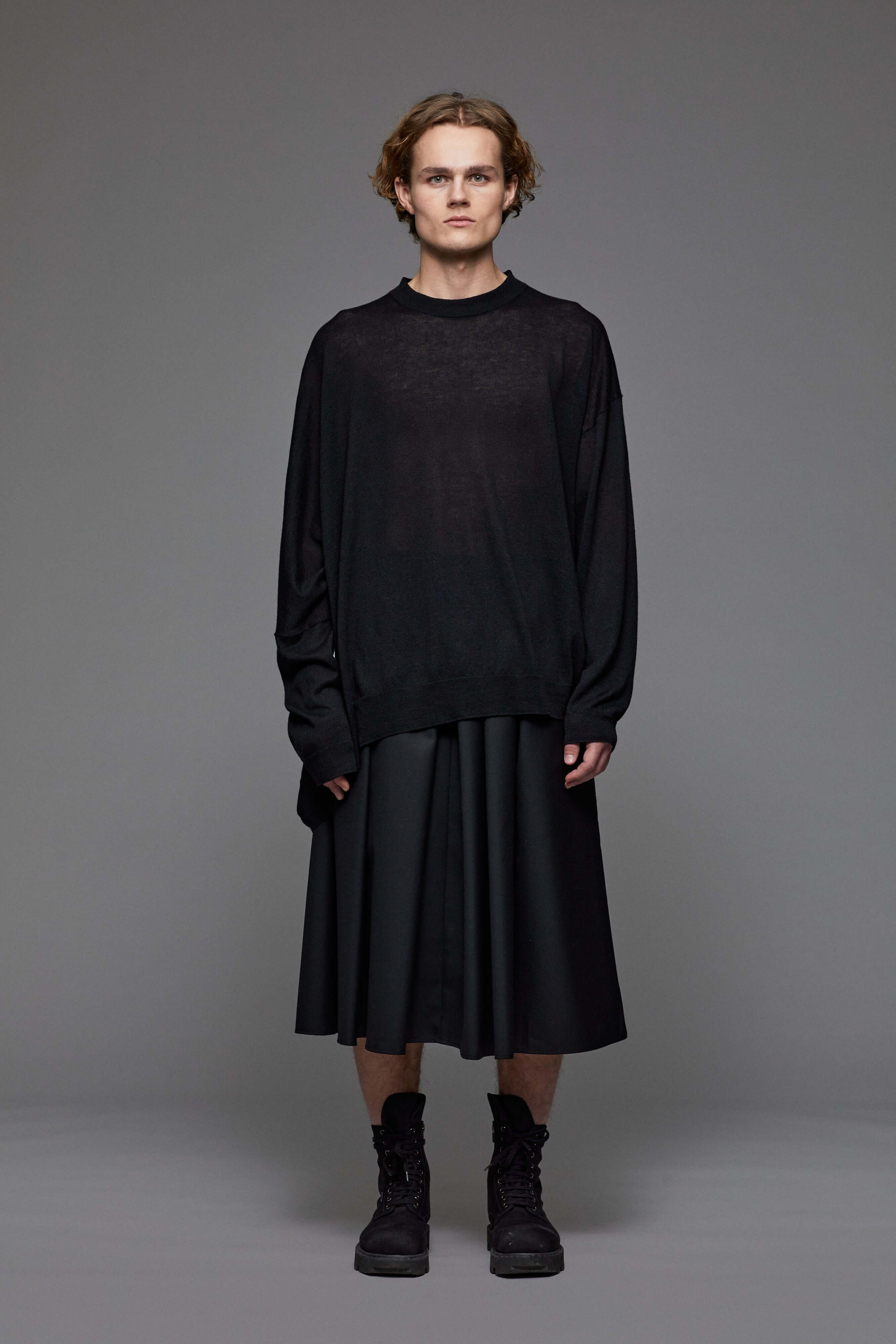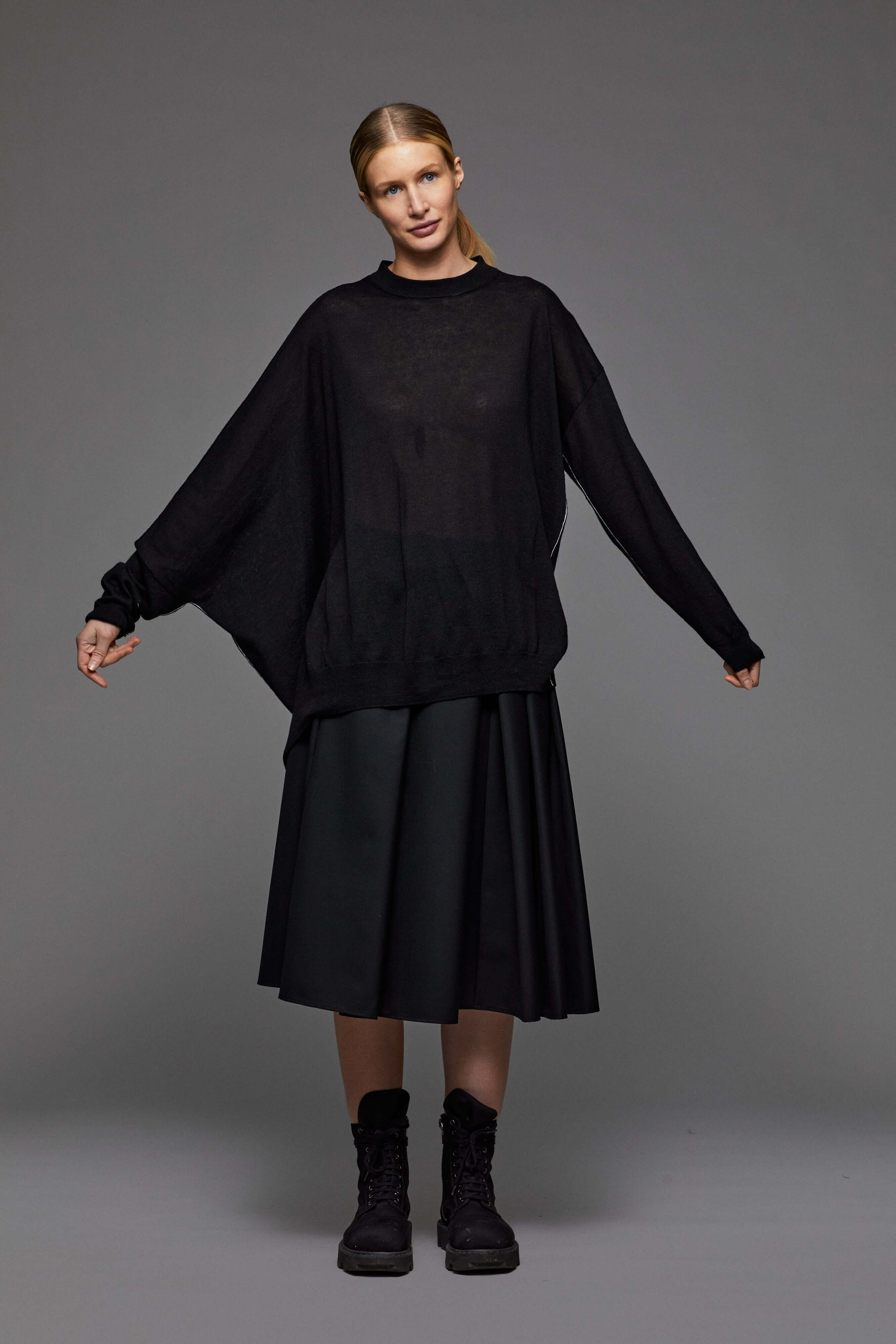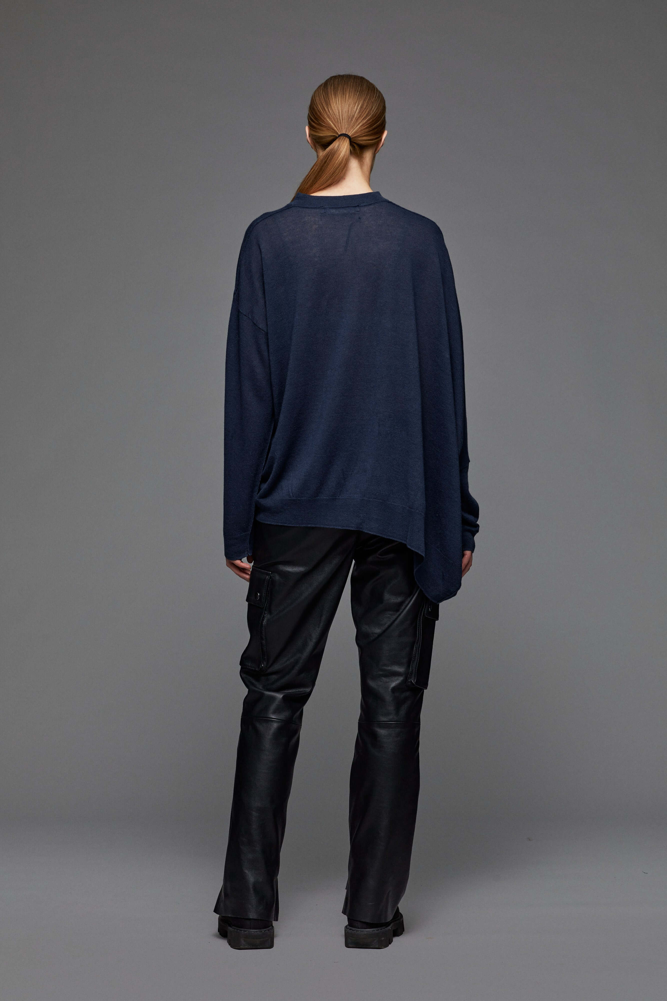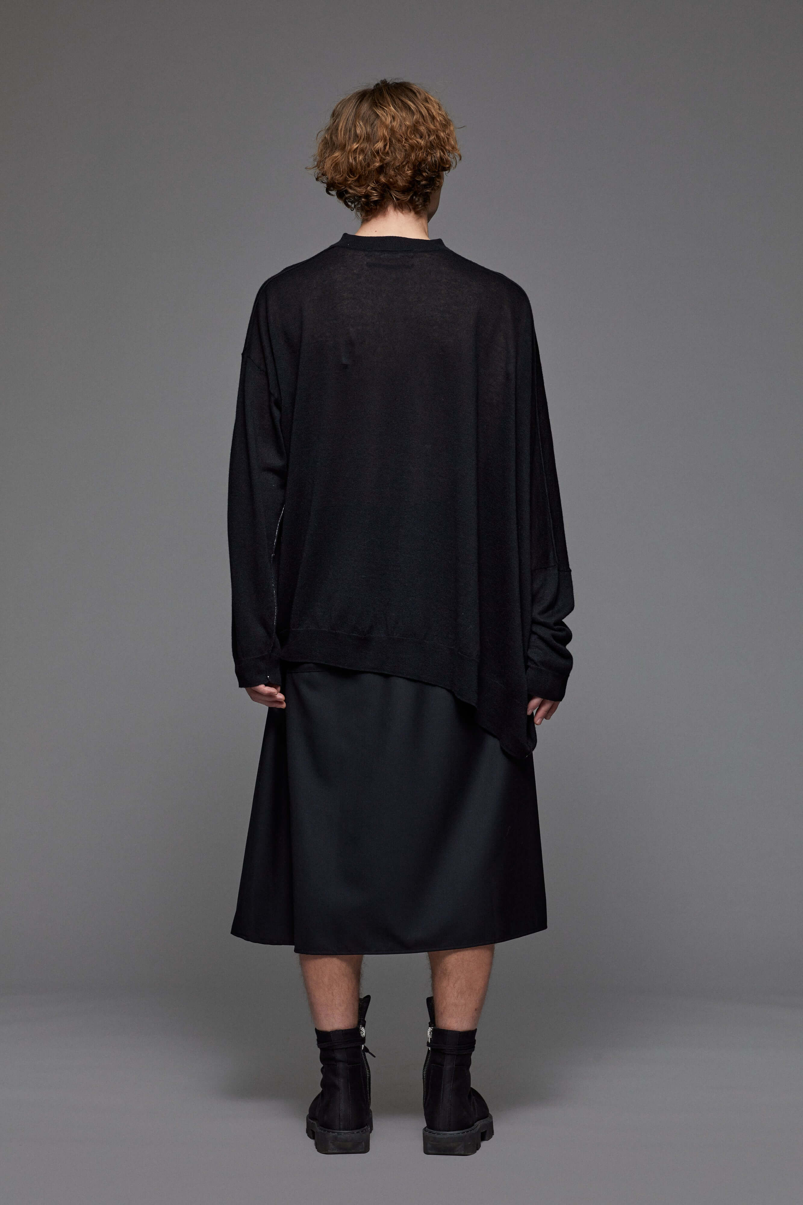 Dünner asymmetrischer, semitransparenter Pullover im Oversized-Look.