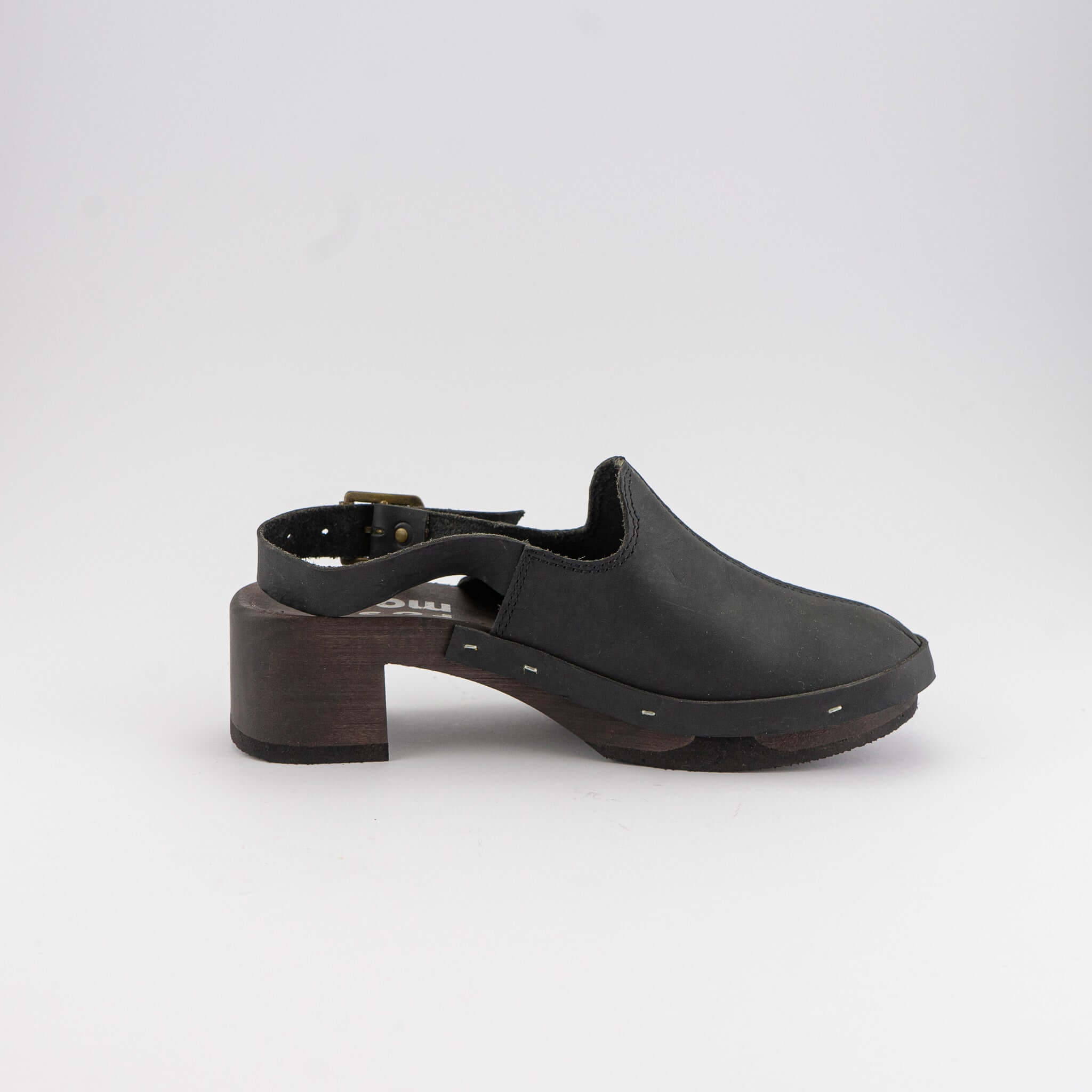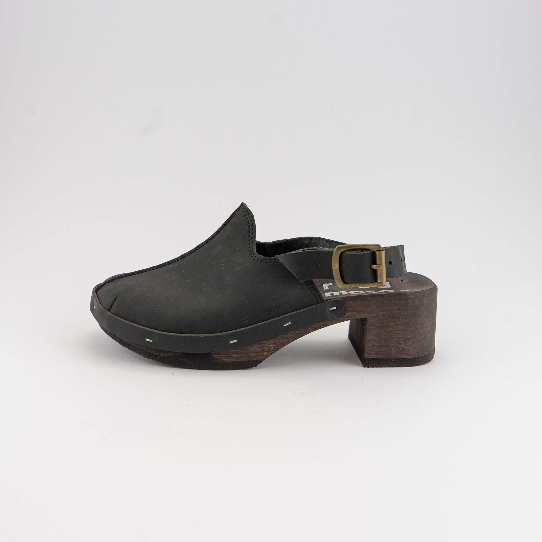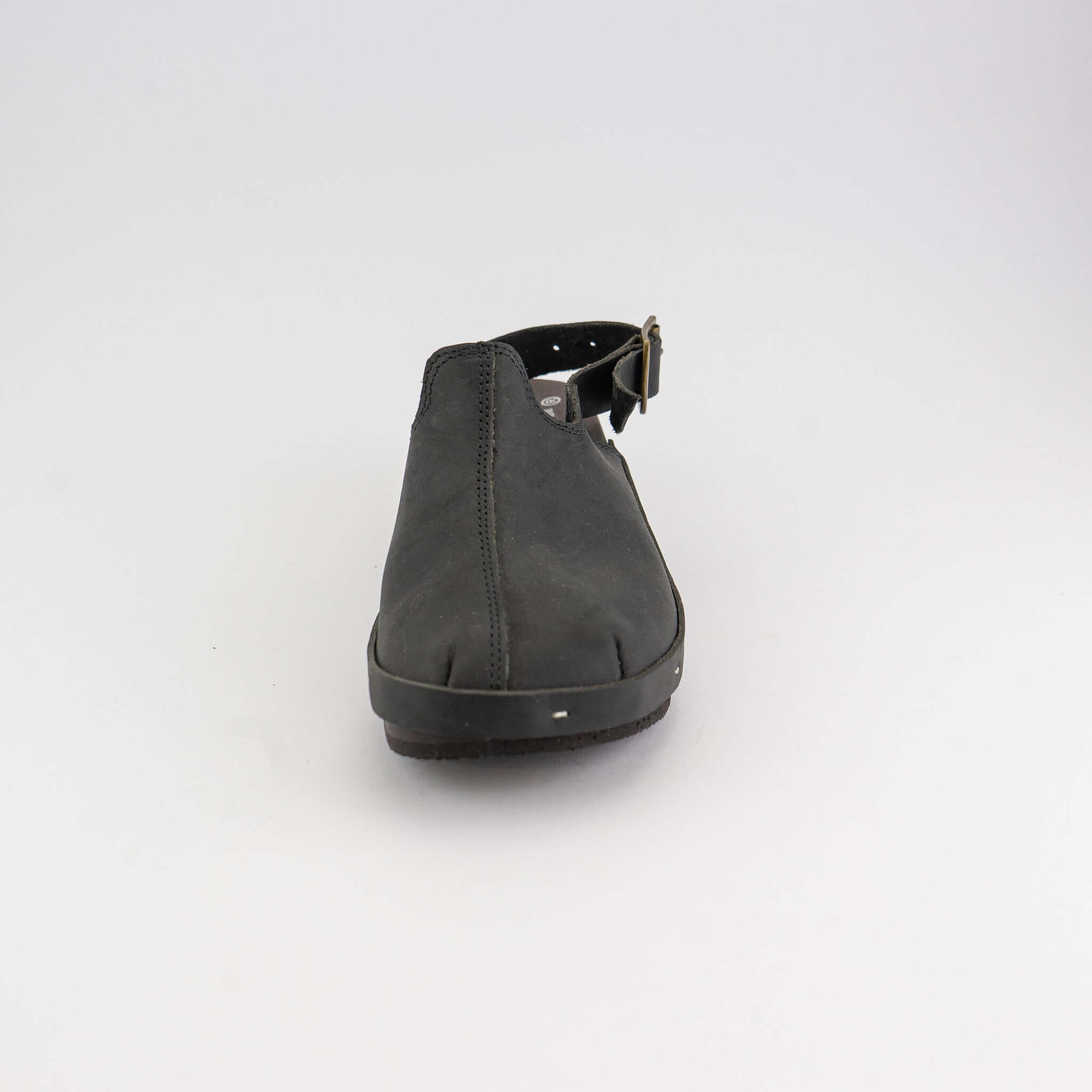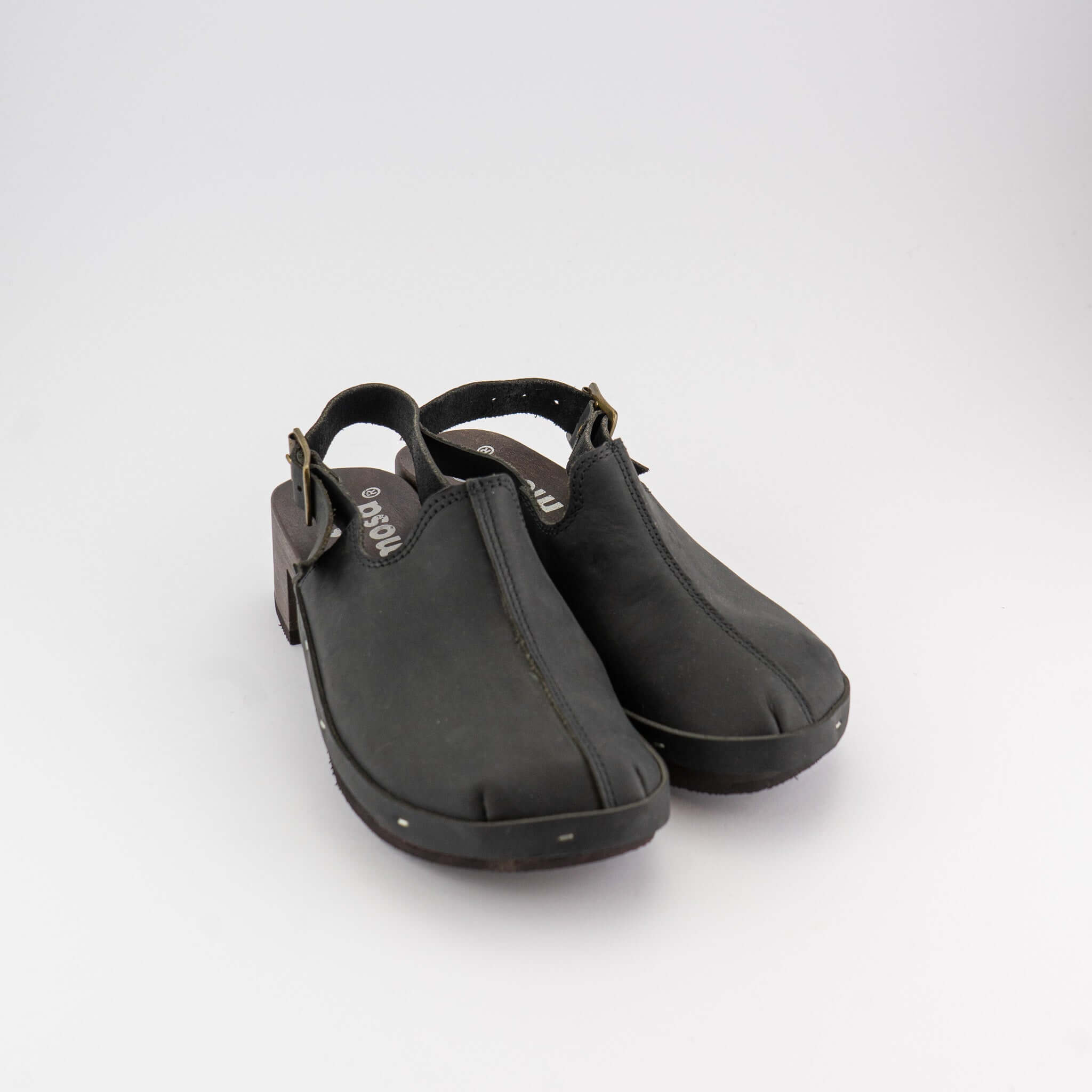 Flexible Clogs aus österreichischem Holz. Verstellbarer Fersenriemen mit Schnalle aus Altmessing. Die Sohlen haben an den Gelenken PU-Riemen, die ein leichtes, weiches und bequemes Abrollen ermöglichen.