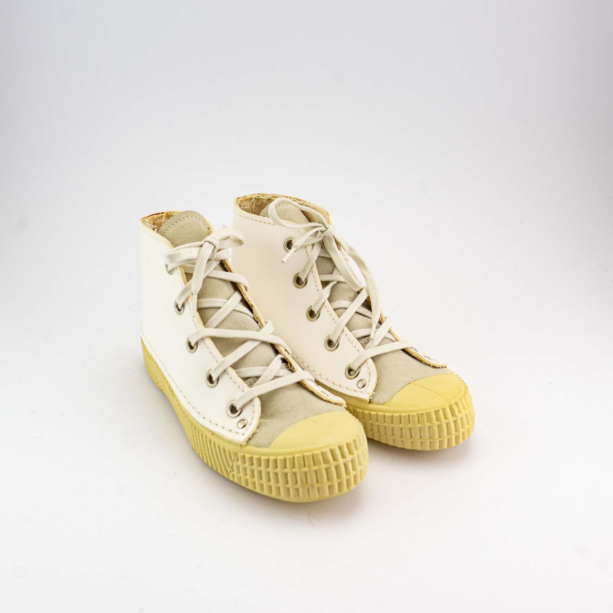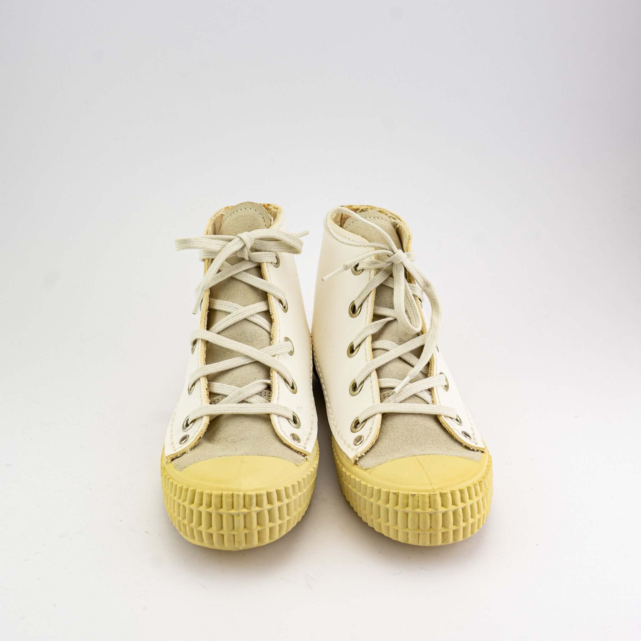 Äußerst bequeme und zugleich modische, hoch geschnittene rosa mosa Turnschuhe. Die Sohlenform stammt ursprünglich von einer Arbeitsschuhform aus den 1950er Jahren.