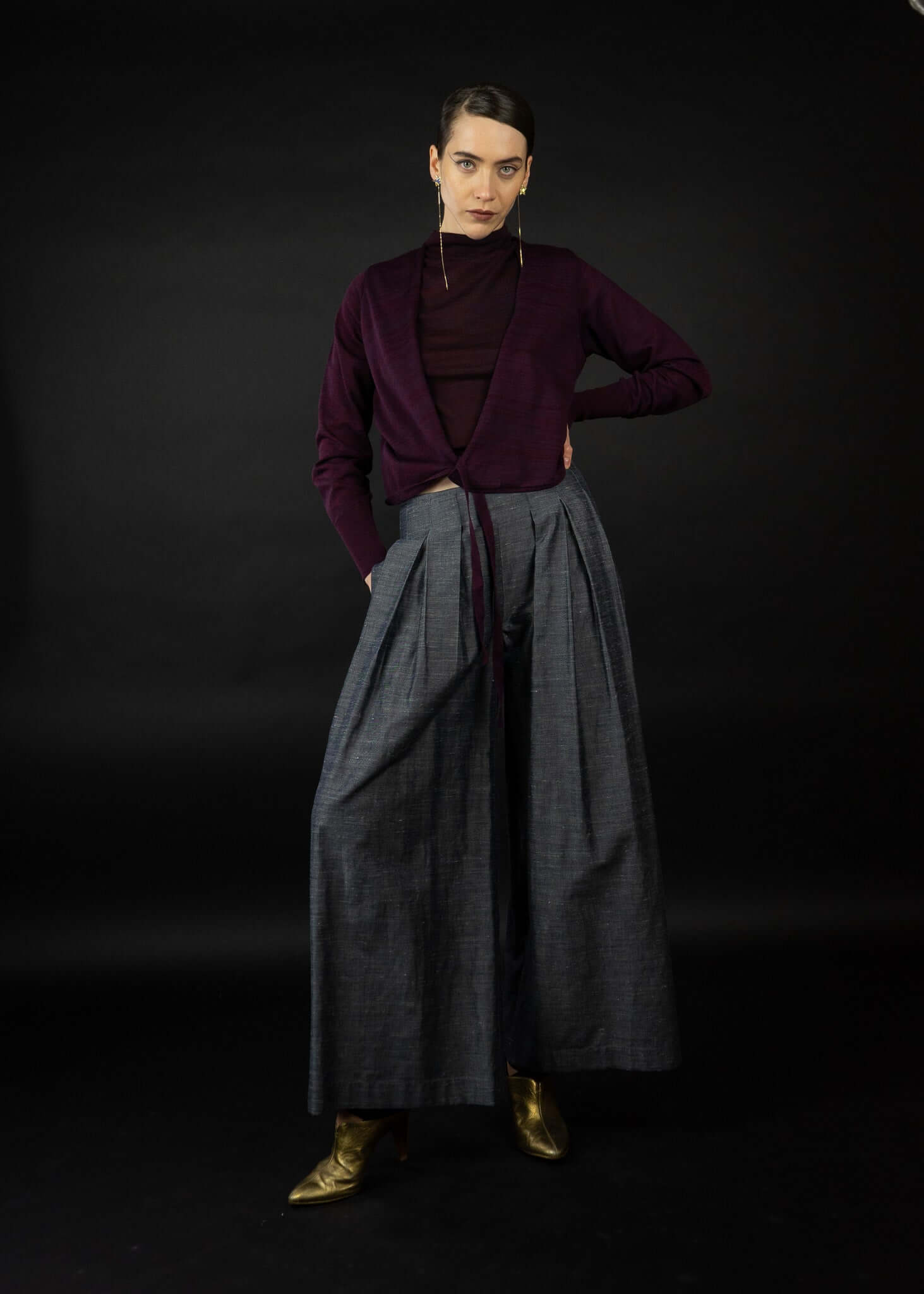 Bundfaltenhose mit Falten am Vorderteil und seitlichen Taschen.