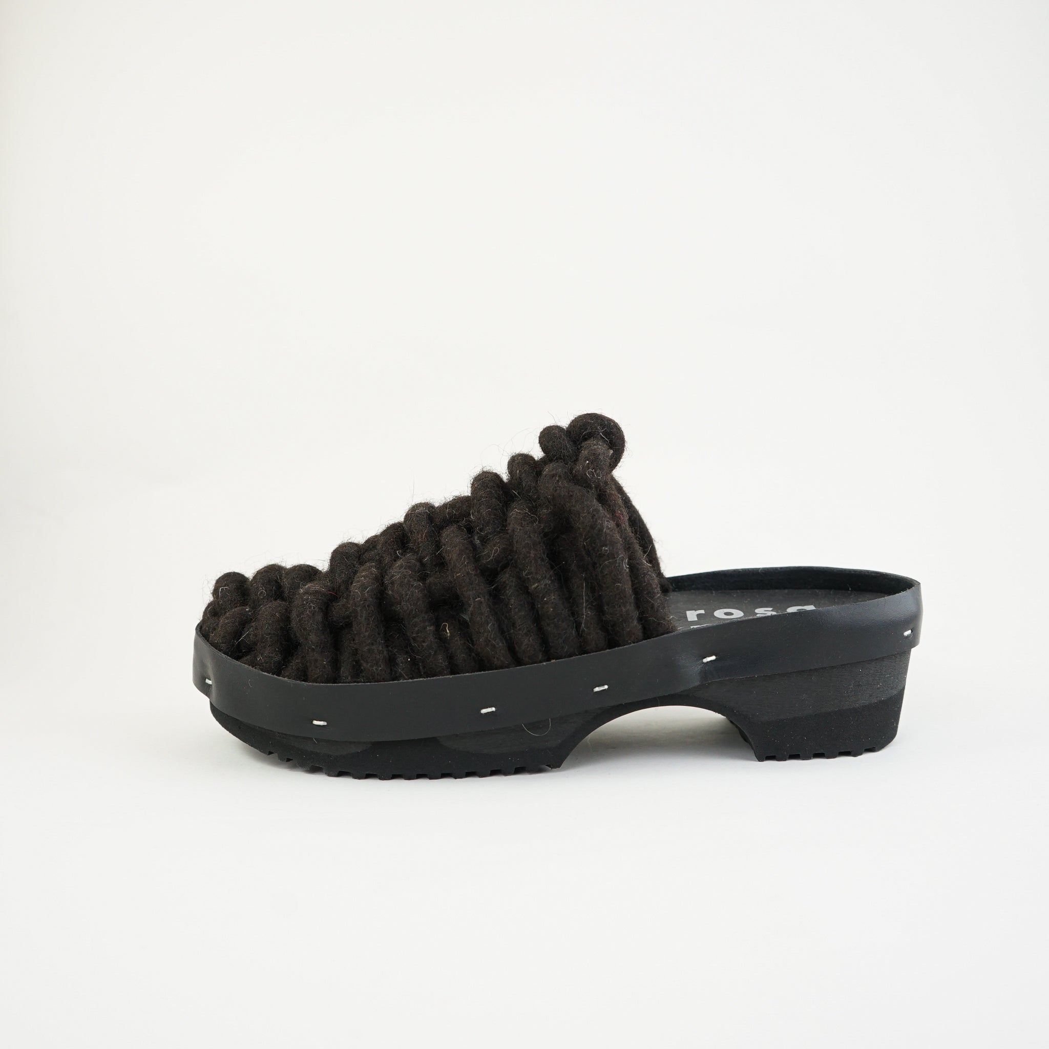 Sehr bequeme und dennoch kühle und flexible Holzclogs in Schwarz, dank des dauerhaft in die Holzsohle eingearbeiteten Gummistreifens.