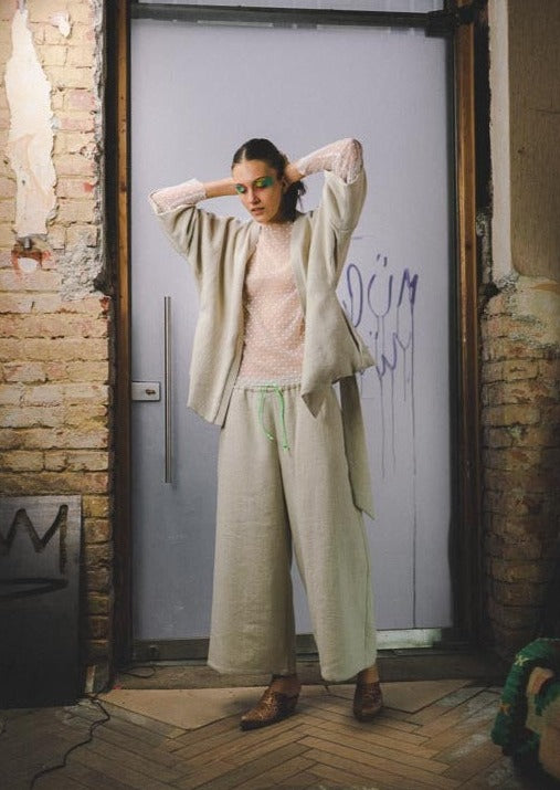 Gemütliche Kordelzug Hose aus einer Mühlviertler Leinen / Wolle Mischung