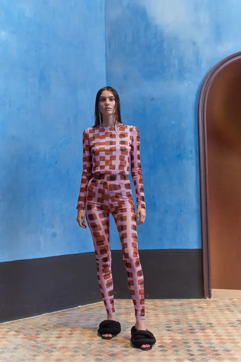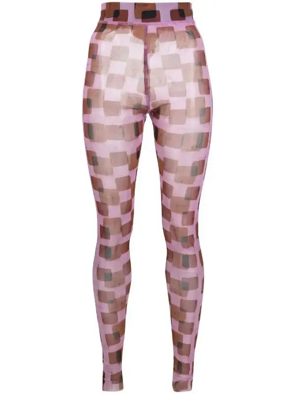 Bedruckte Netz-Leggings. Transparent und körpernah geschnitten.