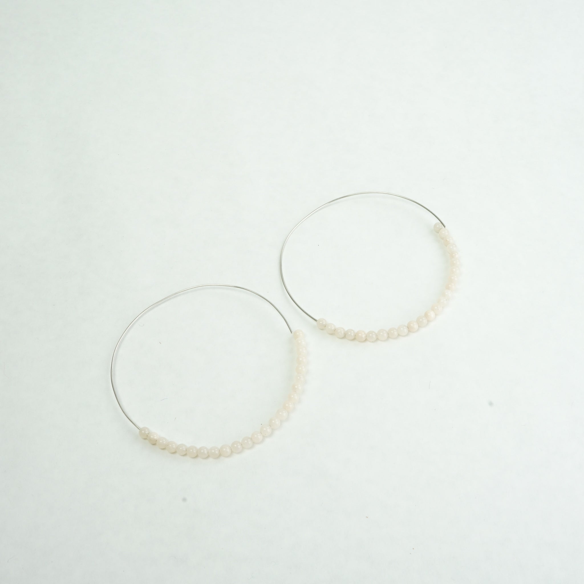 Ein Paar große Reifen. Die Unterseite mit kleinen Perlen aus rosa Jade bestückt.