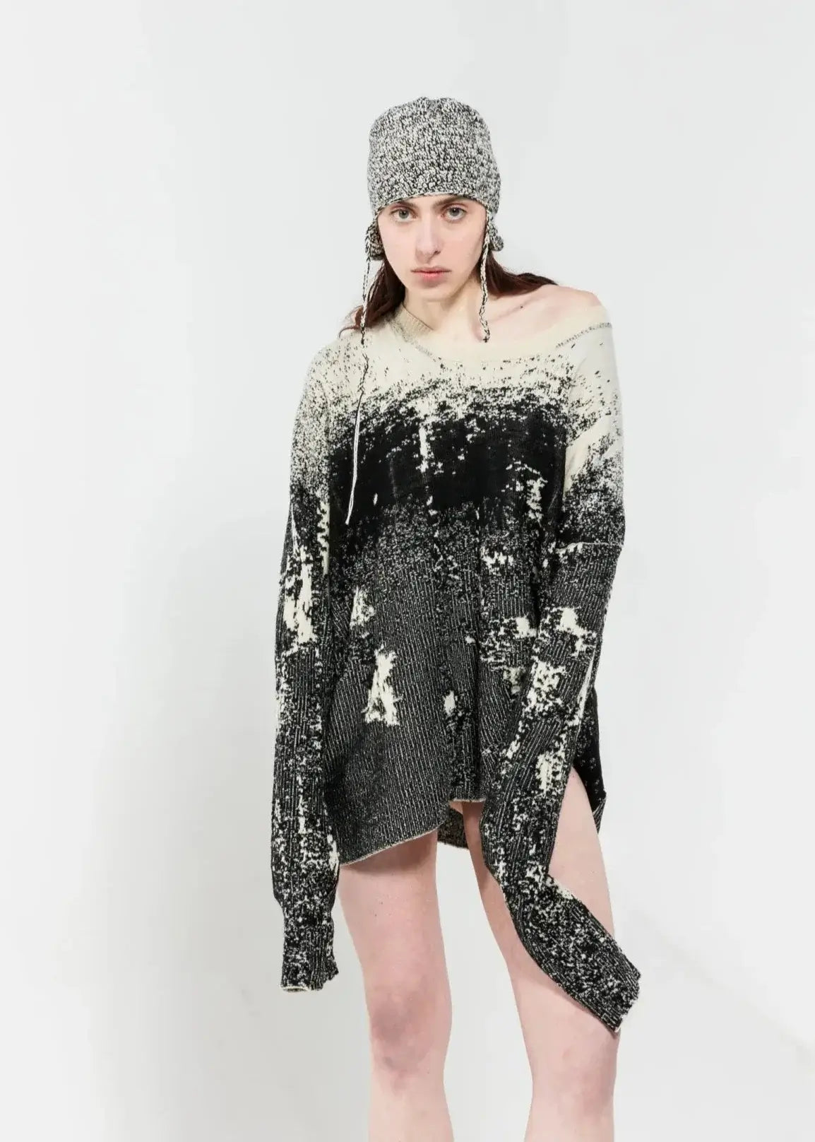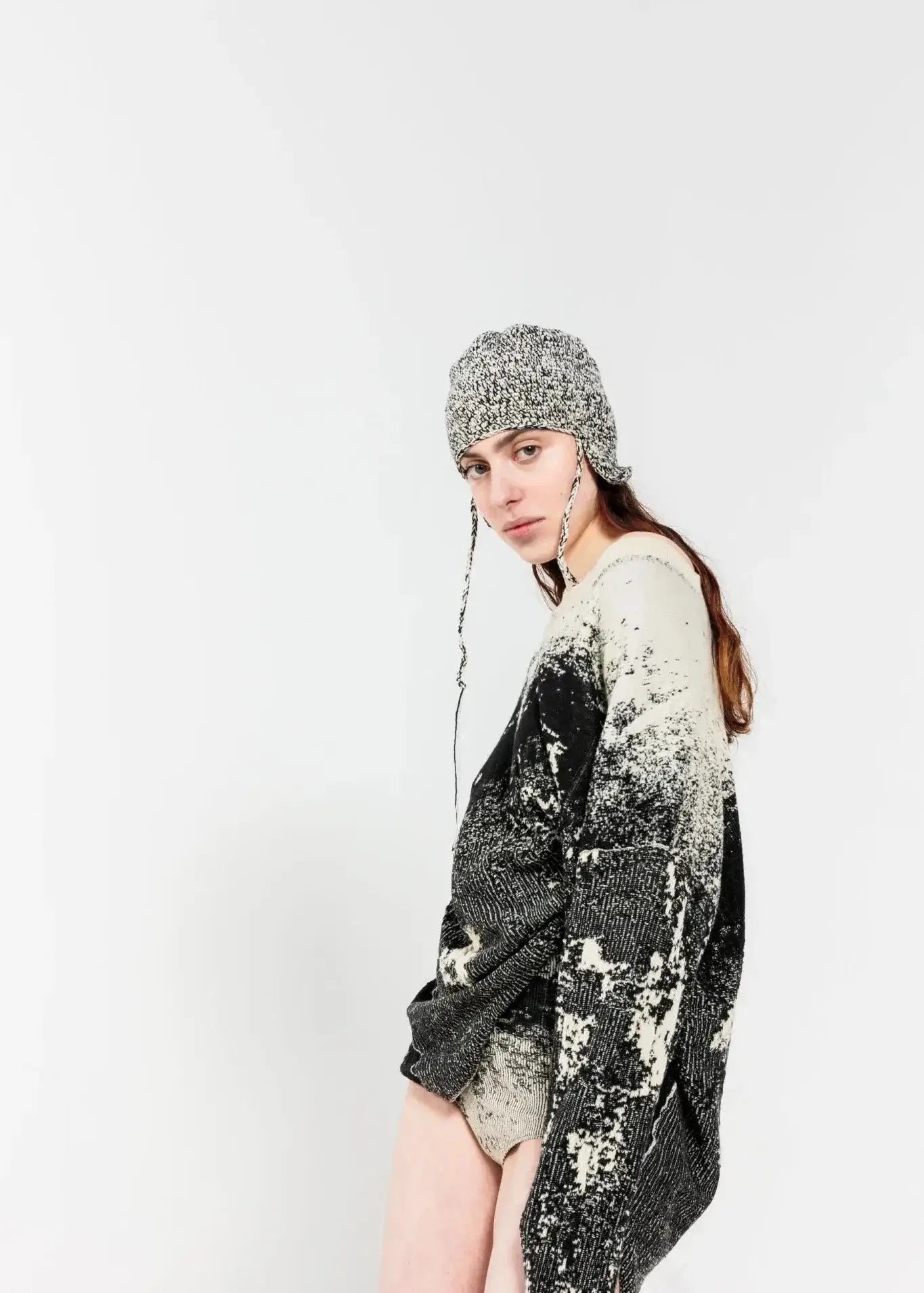 Weicher und bequemer Pullover mit einem abstrakten Jacquard-Motiv aus extrafeiner Merinowolle. Das Design ist nicht nur auf die Oberfläche gedruckt, sondern in die Struktur des Kleidungsstücks integriert.