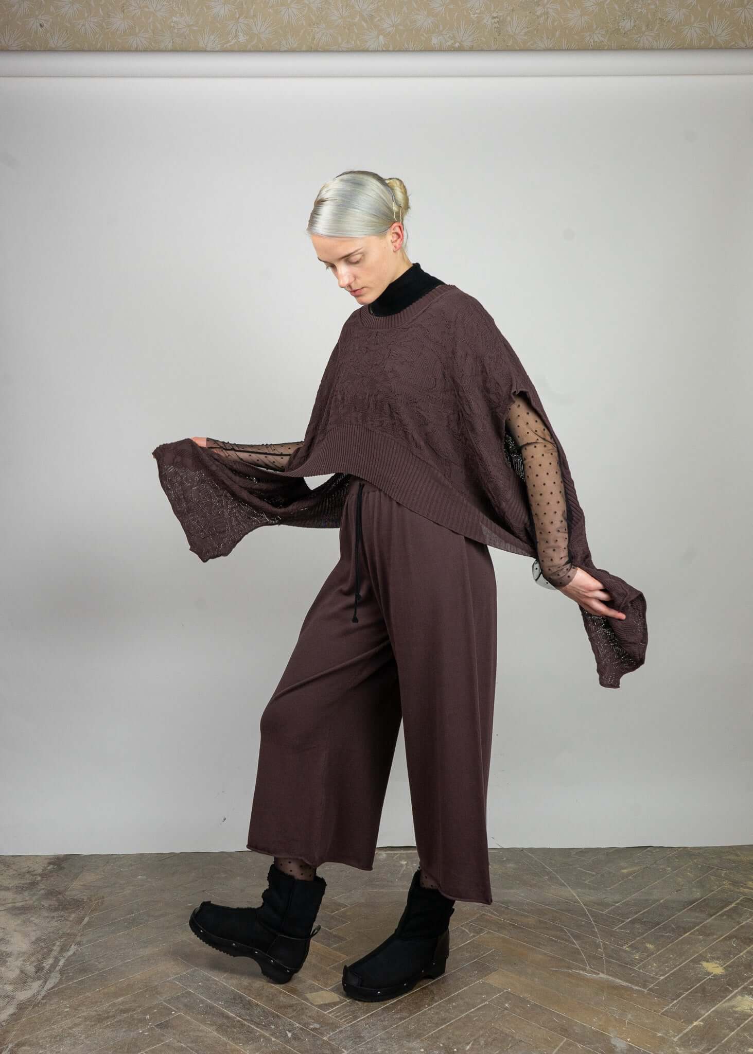 Gestrickter oversized cropped Pullover, kann auch als Cape getragen werden