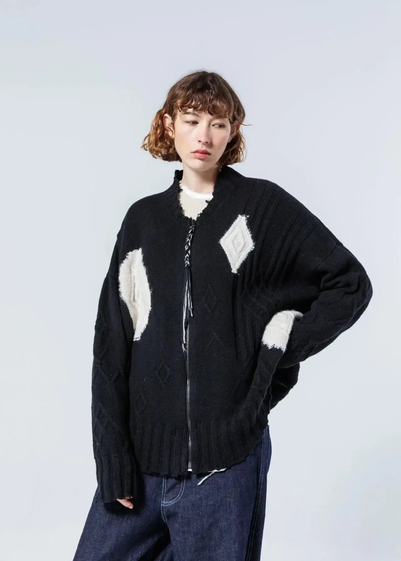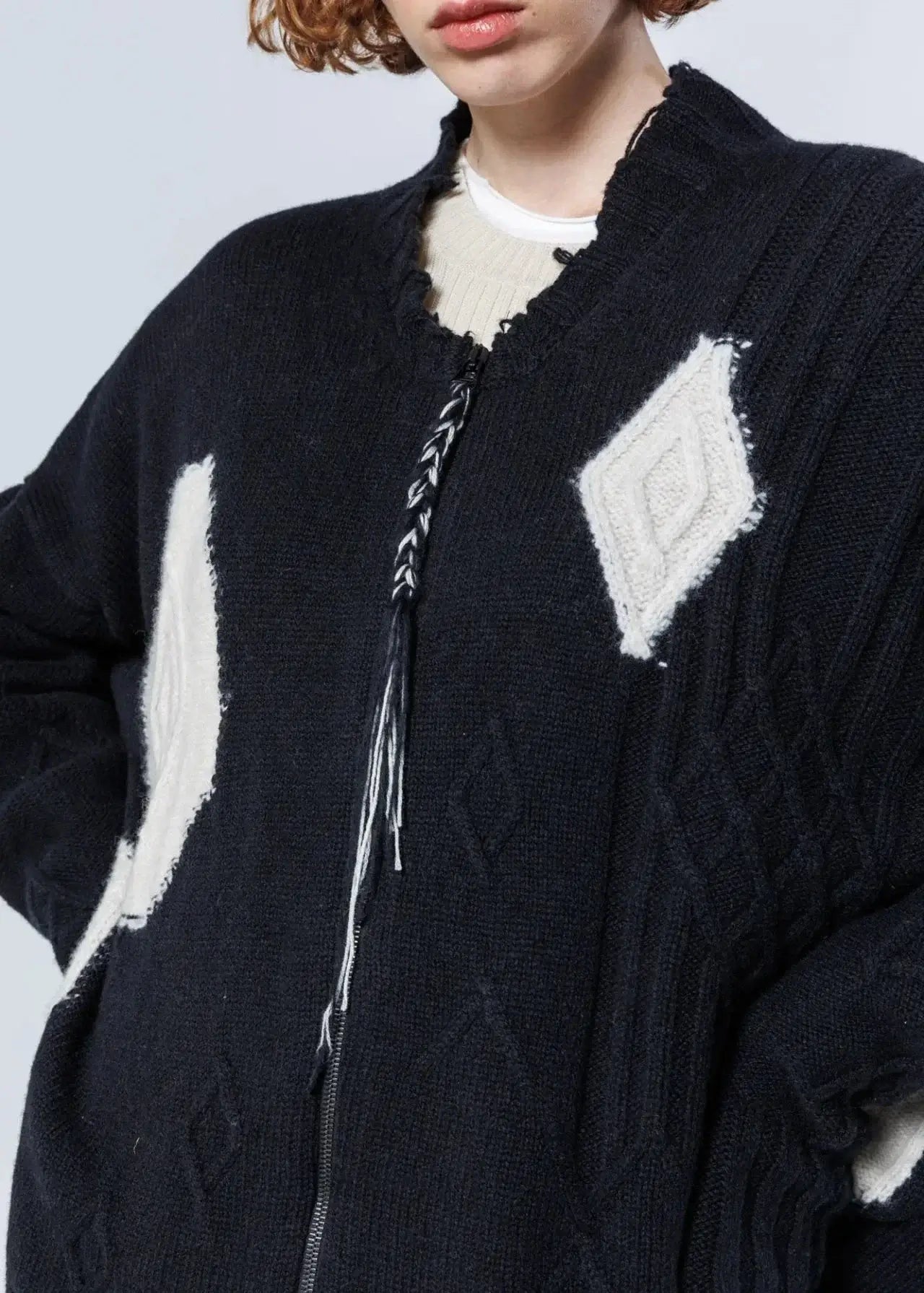 Warme und bequeme Strickjacke mit Reißverschluss mit Aran-Motiv und Intarsien aus feiner Merinowolle.
