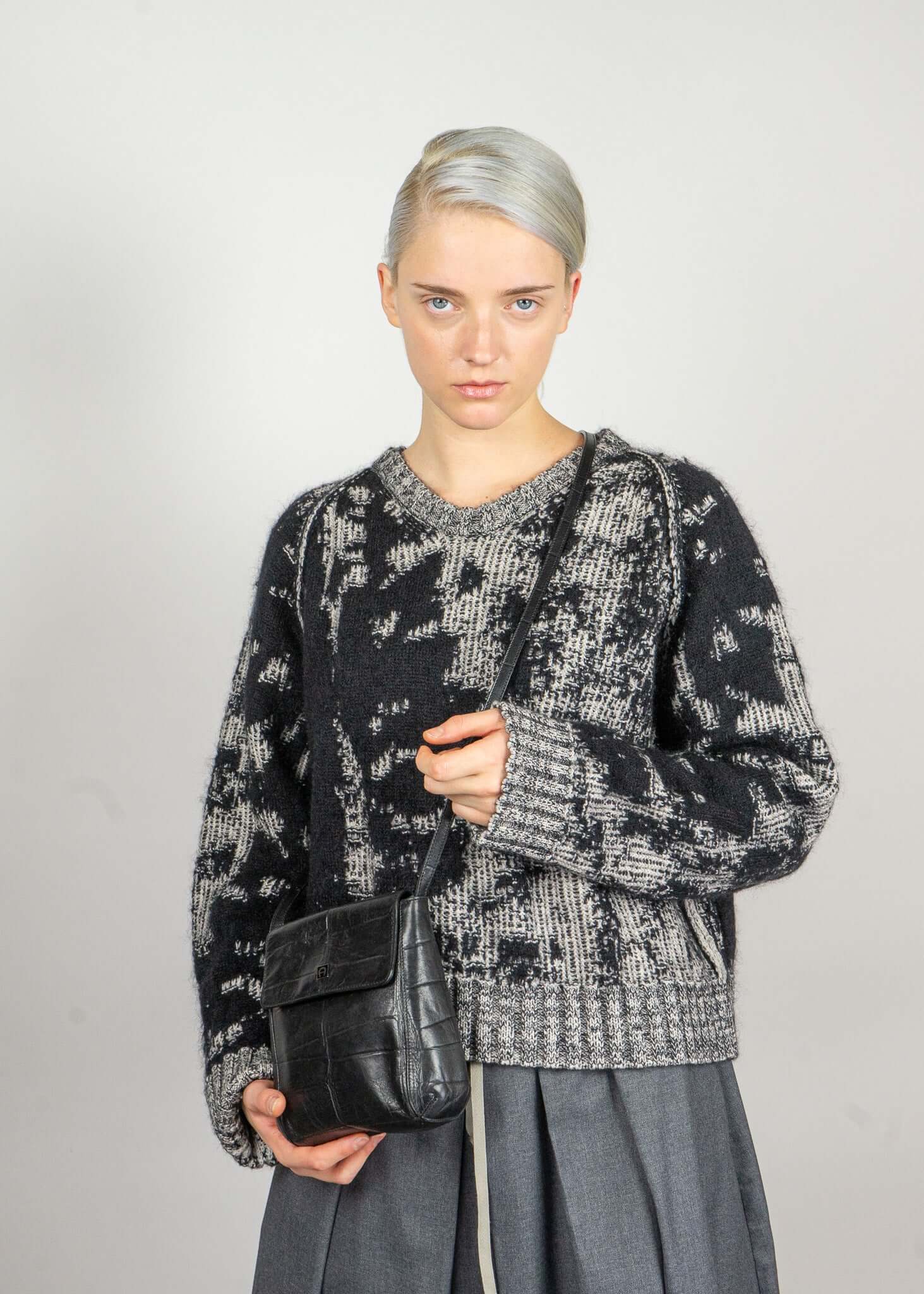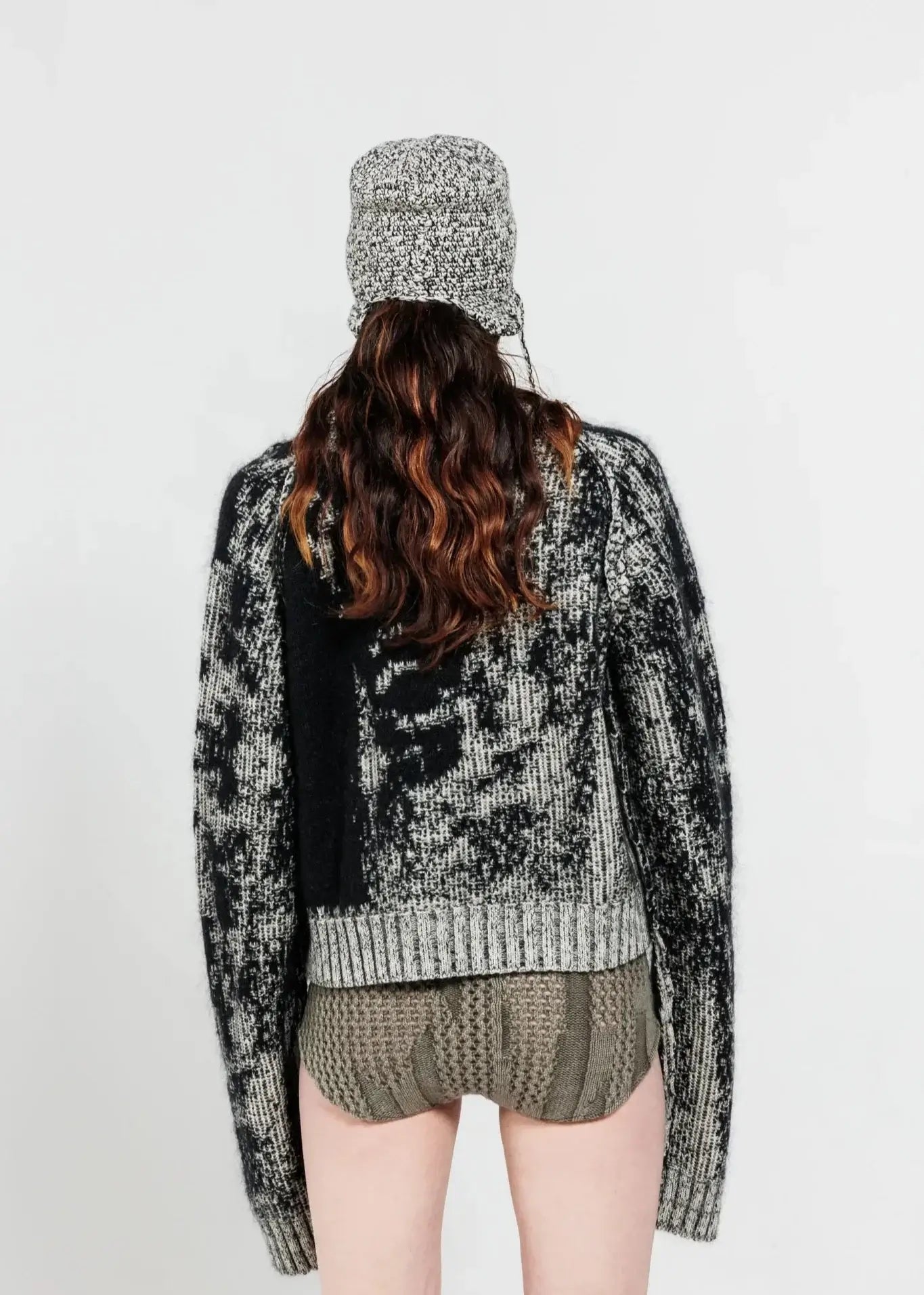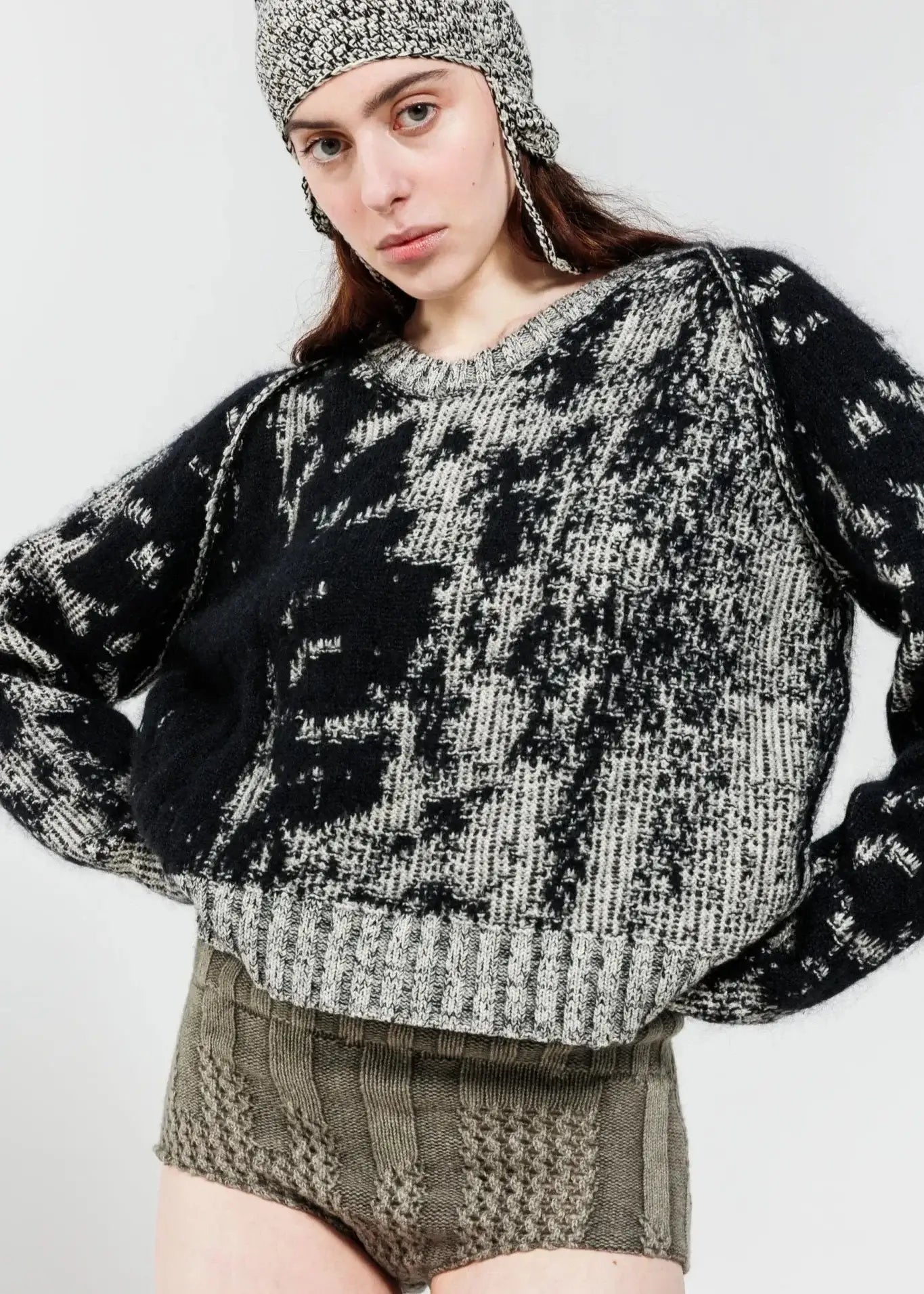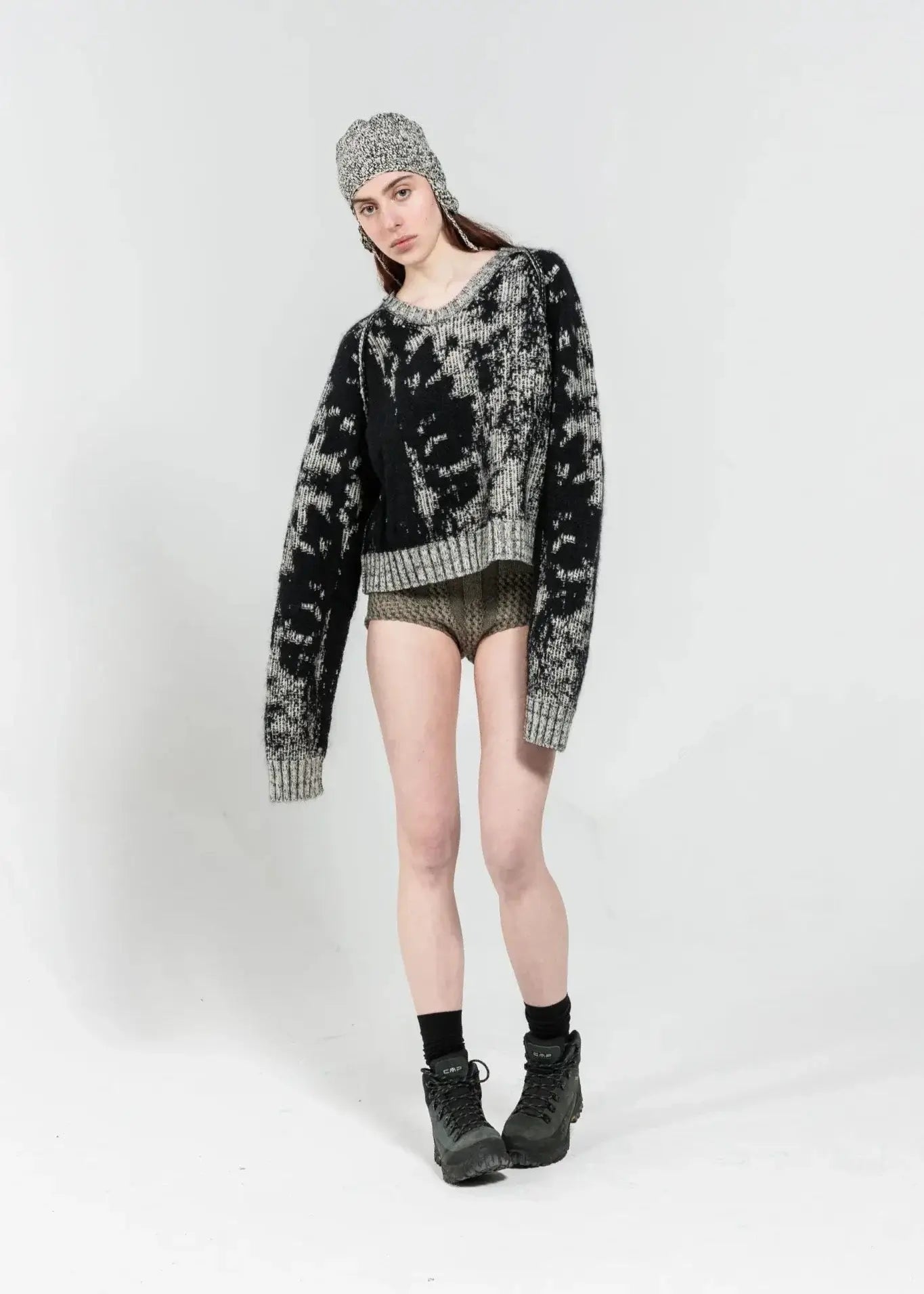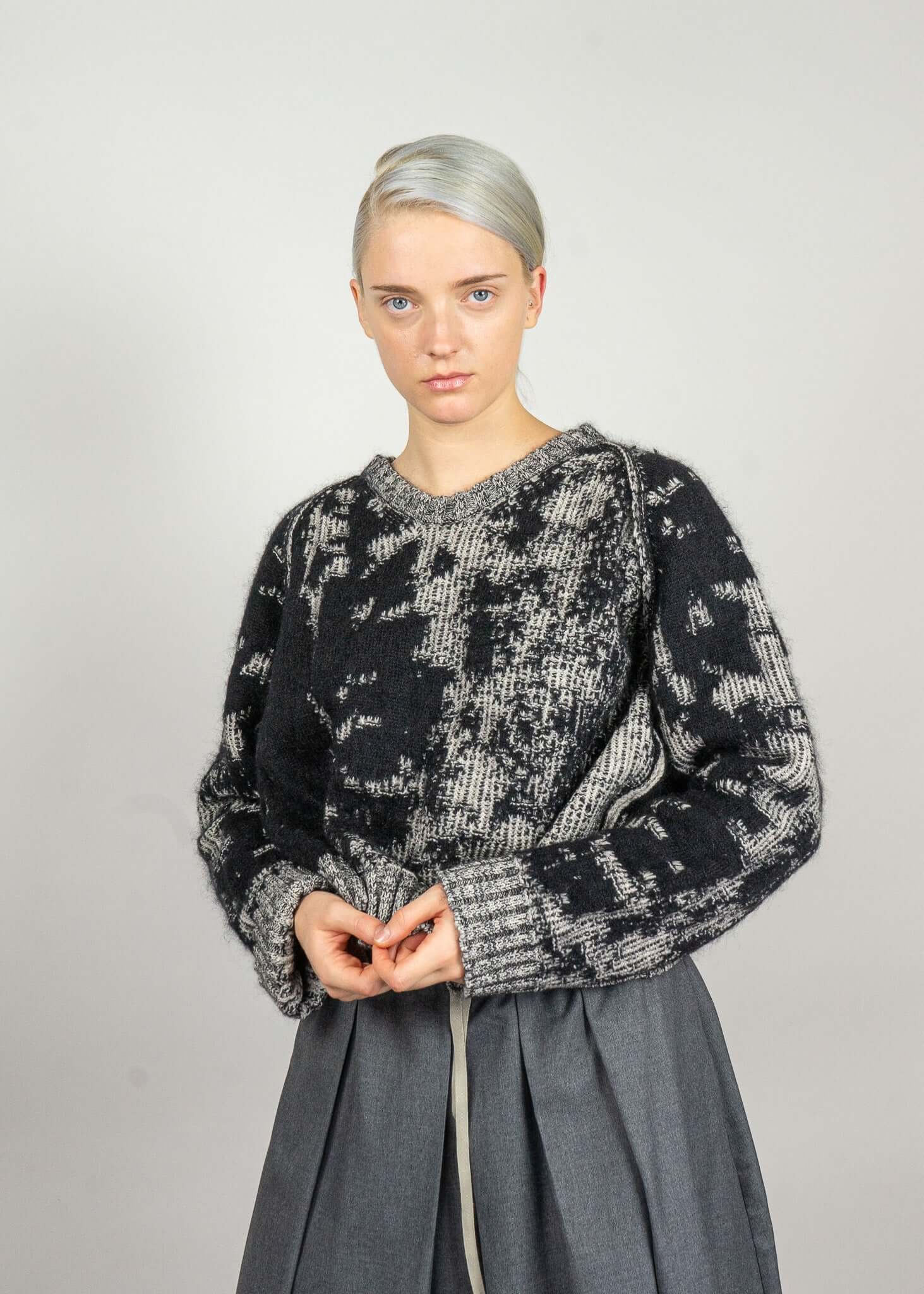 Kurzer Raglanpullover mit Jaquardmuster aus 3 Garnen
