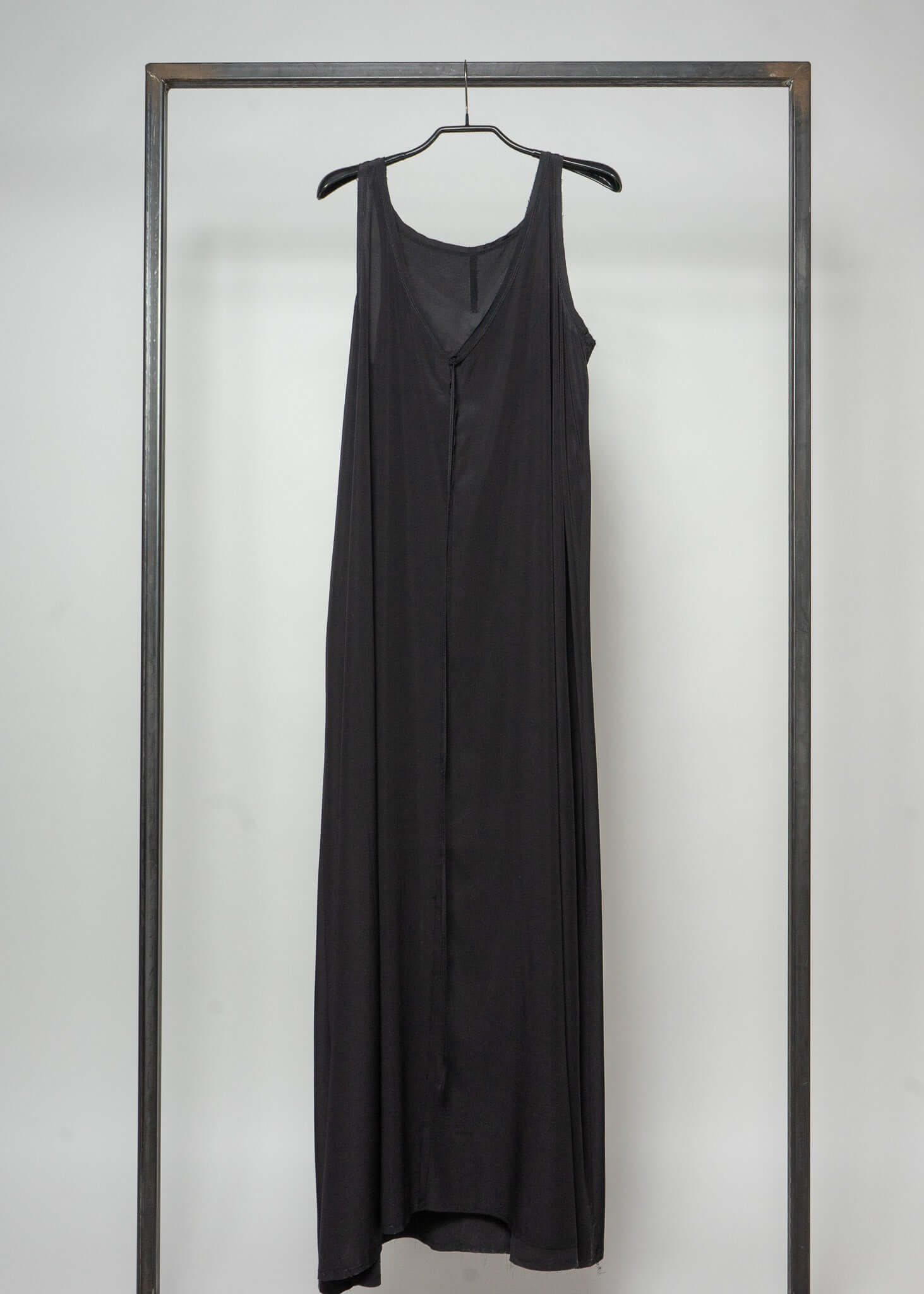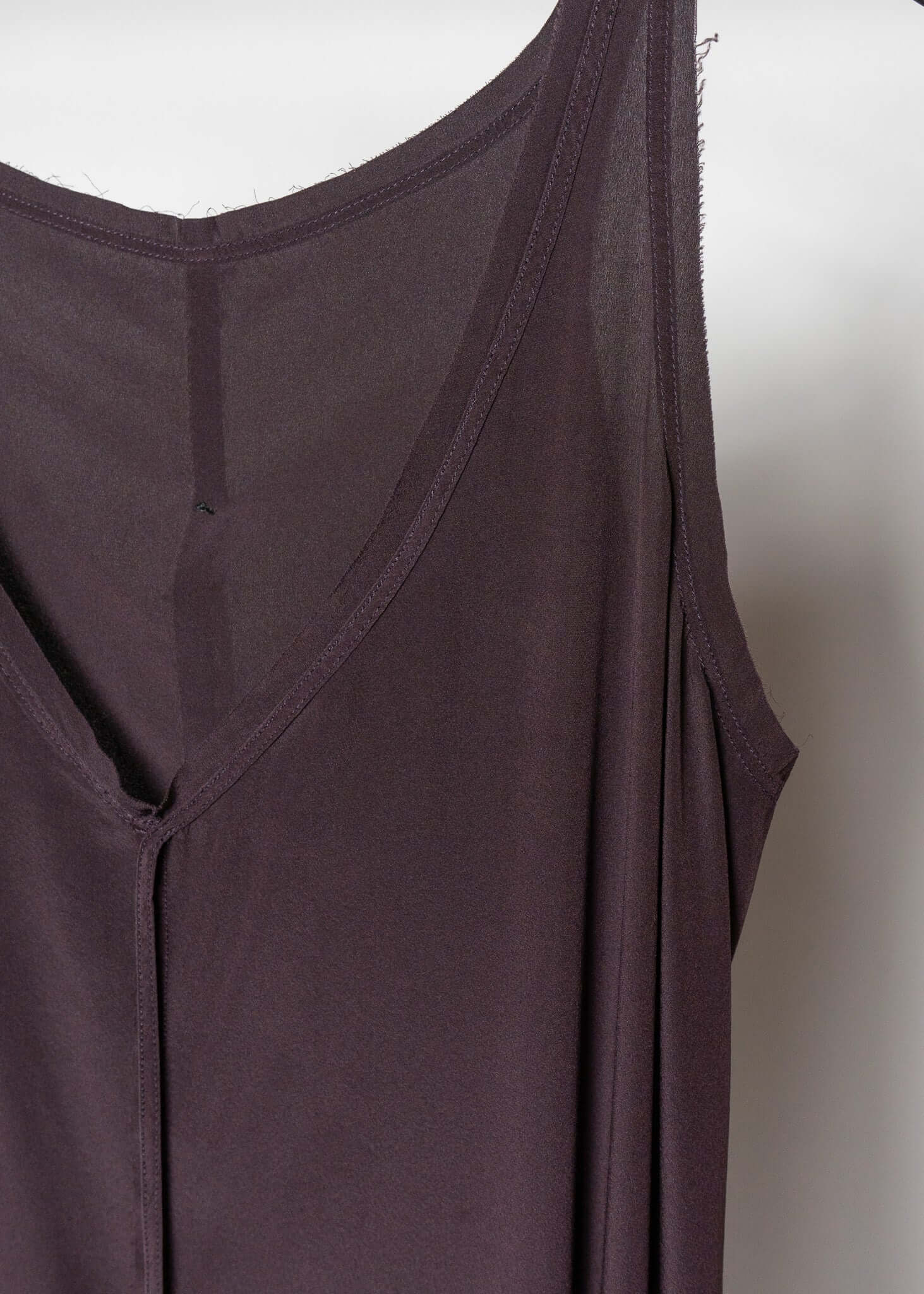 Seidenkleid mit leichter A-Linie, tiefem V-Auschnitt und offenen Säumen