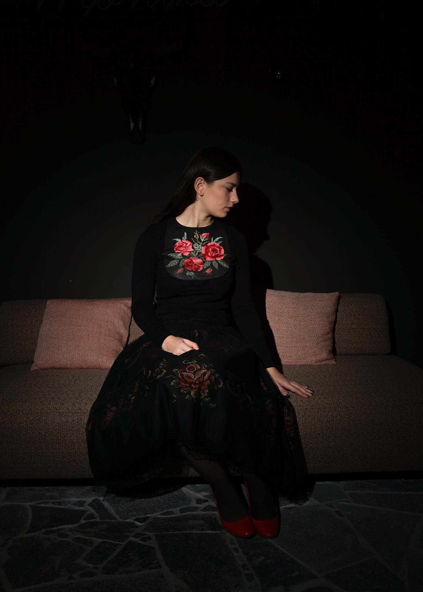 Shirt aus Viskose-Jersey mit bedrucktem Brusteinsatz