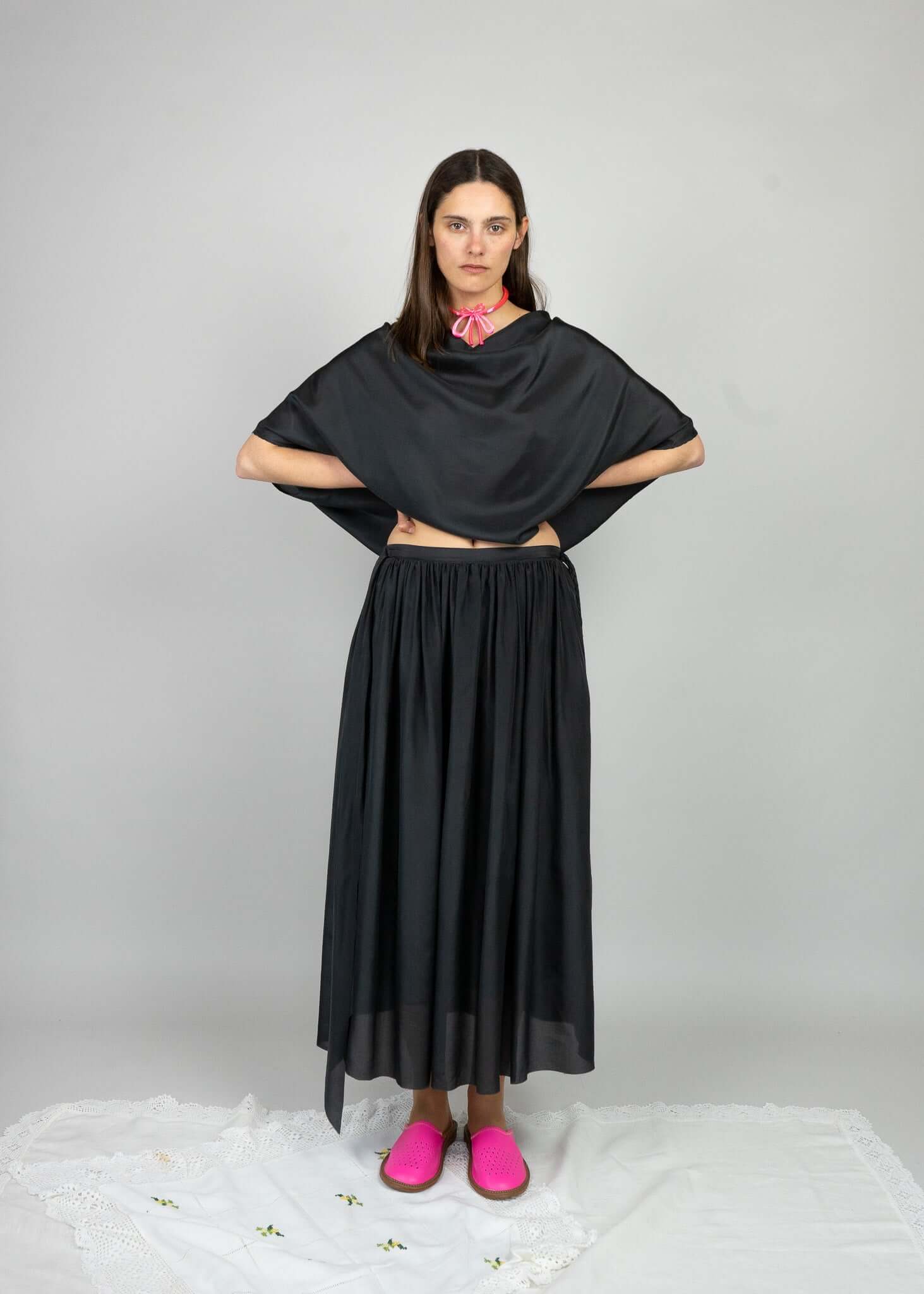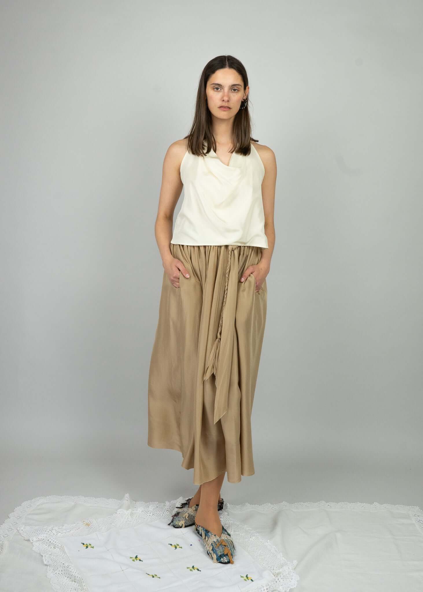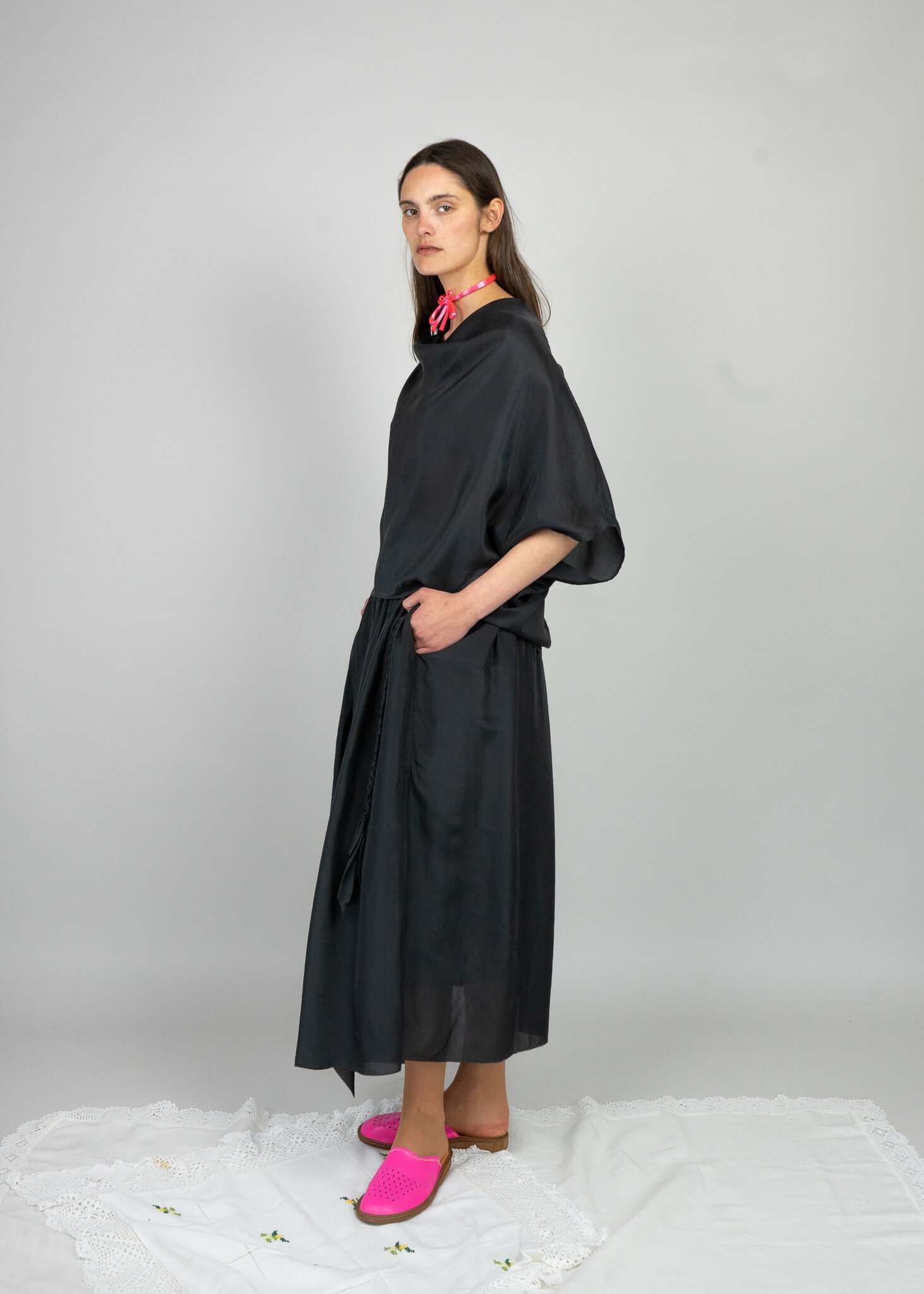 Elsa Esturgie is an exquisite line of handcrafted garments out of Paris. The designer uses high-quality materials such as silk, cotton, wool, and cupro to creates timeless pieces. Every season Elsa chooses a letter from the alphabet to name her pieces after, this year it is the letter E