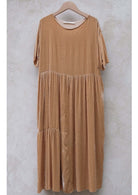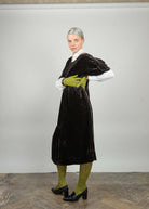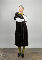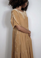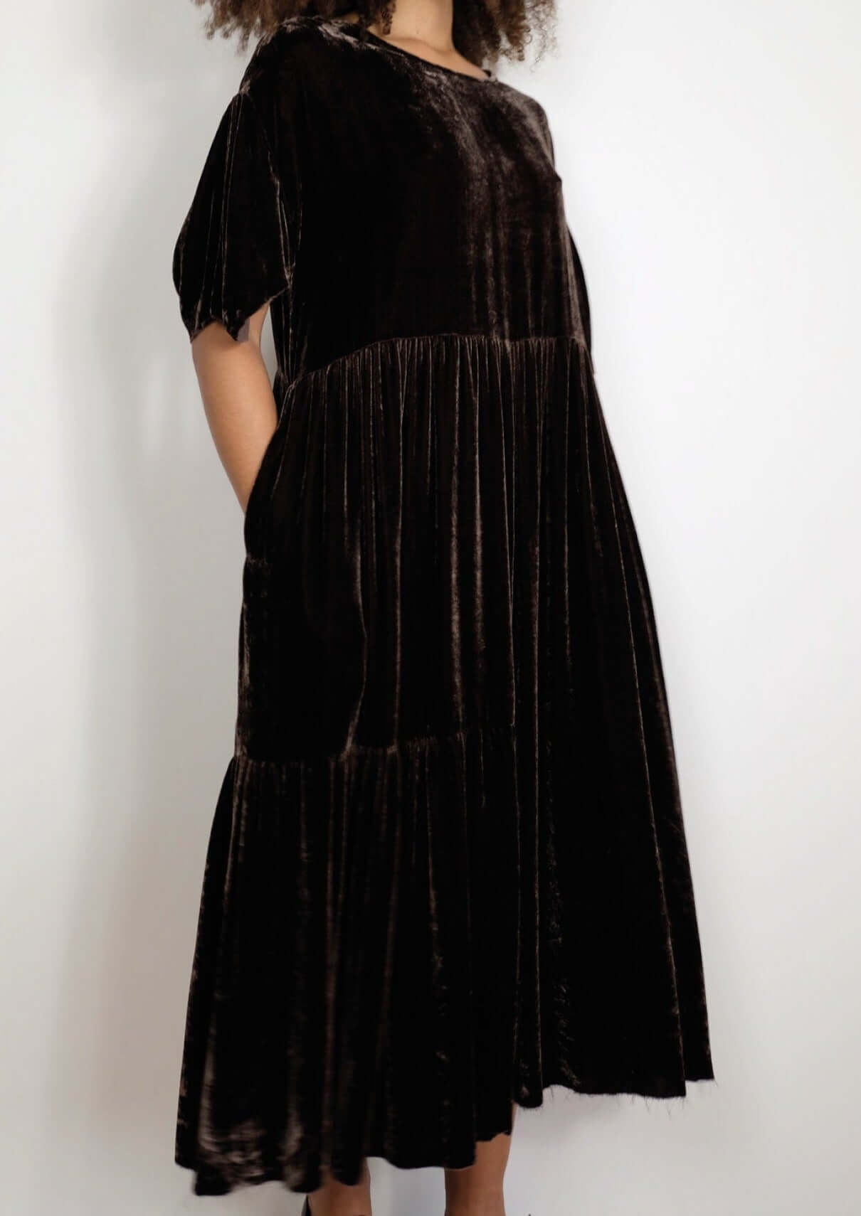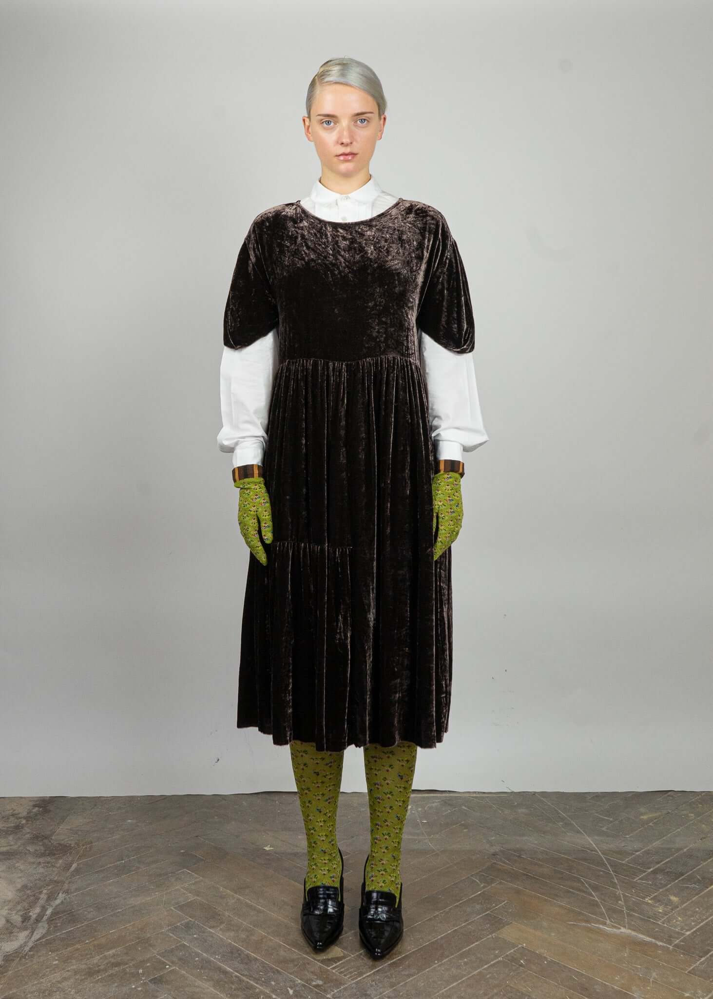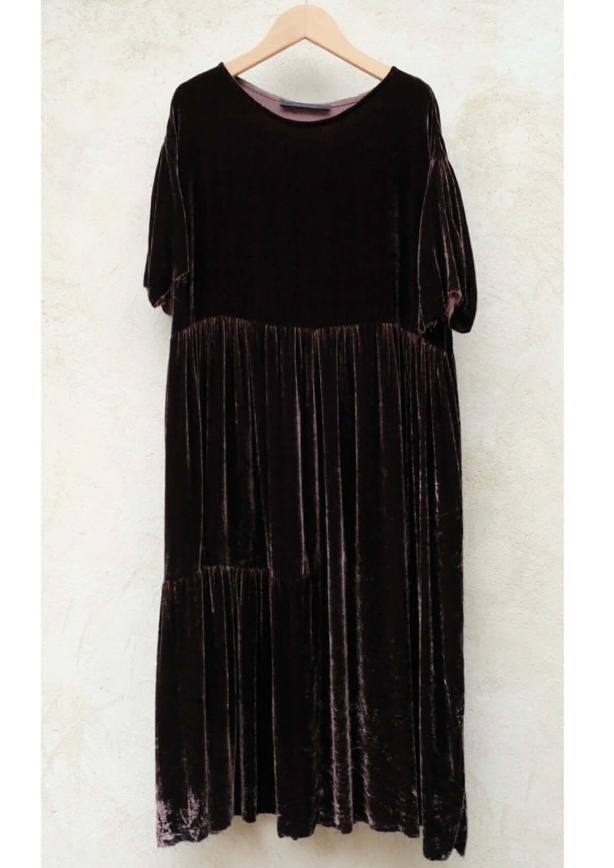 Dress with gathers and short loose-fitting sleeves made of velvet