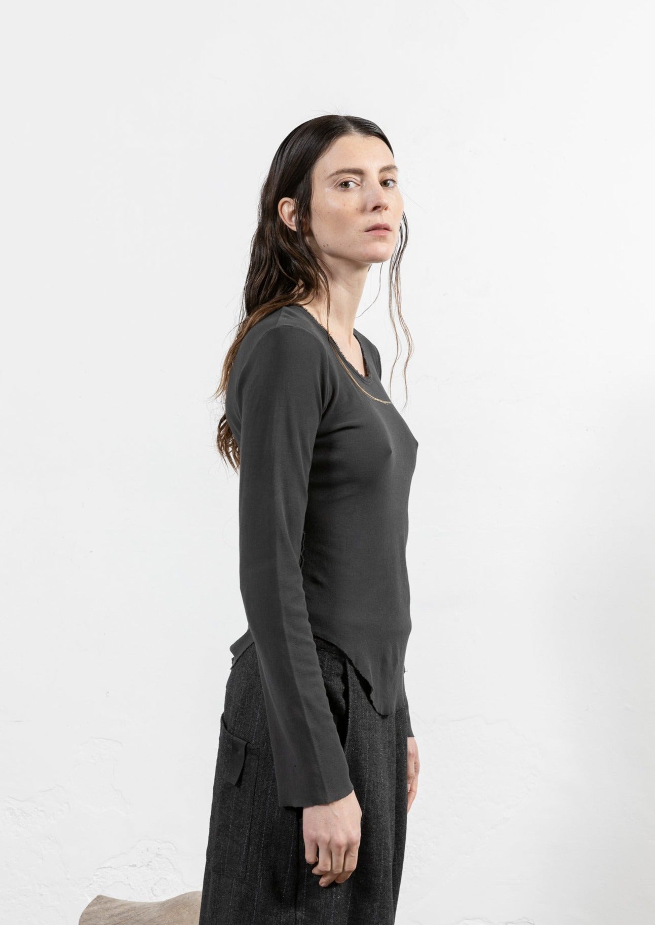 Long-sleeved shirt made from cotton jersey.