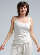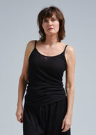 Cami top with semi plunging neckline. Adjustable straps. Double-stitched hem. Made from soft and exclusive silk. The fabric has a temperature-regulating effect.