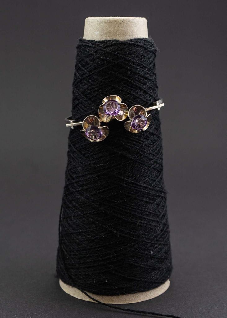Seltener Finnland Schmuck Armreif aus Silber mit drei Amethysten