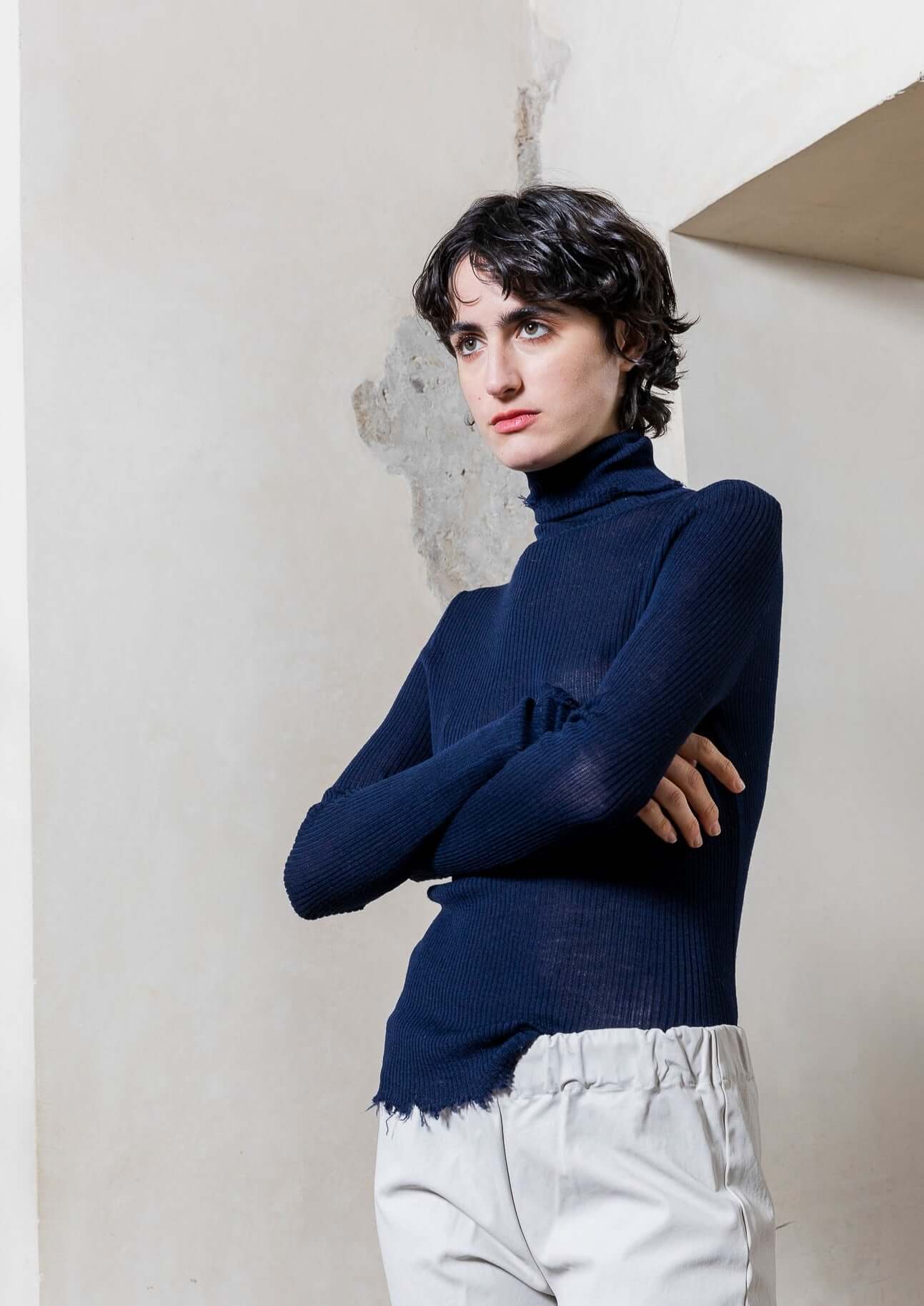 Feiner, halbtransparenter Pullover mit Rollkragen.