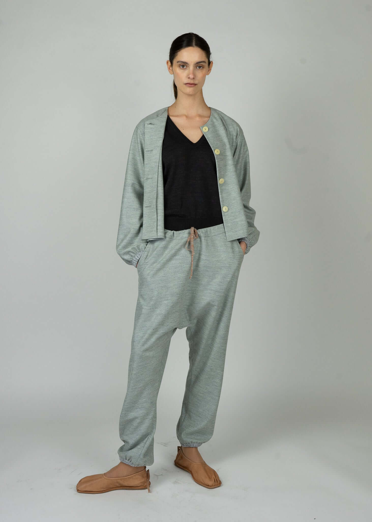 Hose aus einer weichen Schurwolle mit tiefem Schritt, elastischem Bund und Eingrifftaschen, aus der Kollektion BOHEMIAN ANARCHIST