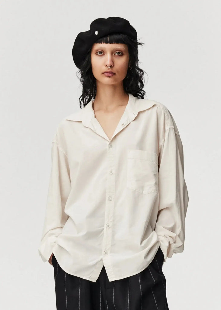 Ein weit geschnittenes Hemd mit einer tiefen Armöffnung.